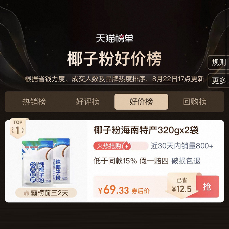 南国食品海南特产纯椰子粉320gx2袋装 速溶椰奶椰汁粉速溶冲饮早餐