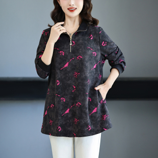 中老年加肥加大阔太太上衣高级感小衫 秋季 女t恤洋气胖妈妈装 大码