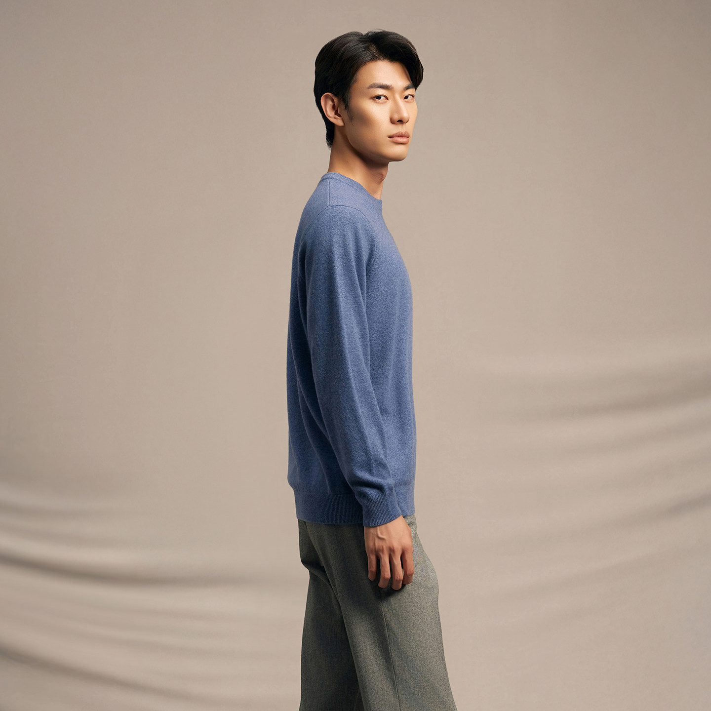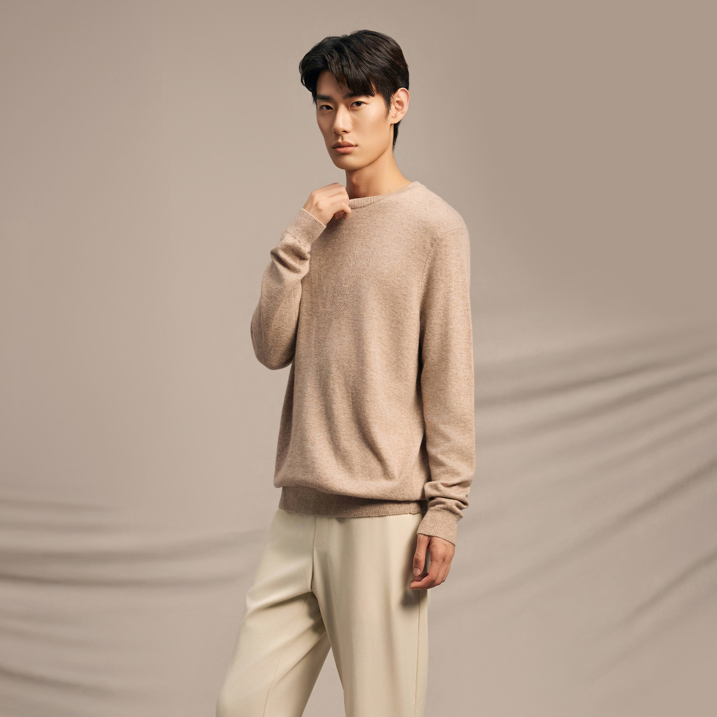 新品 鹿王100%山羊绒衫 保暖打底春季 毛衣内搭纯色时尚 男圆领针织衫