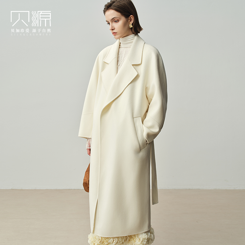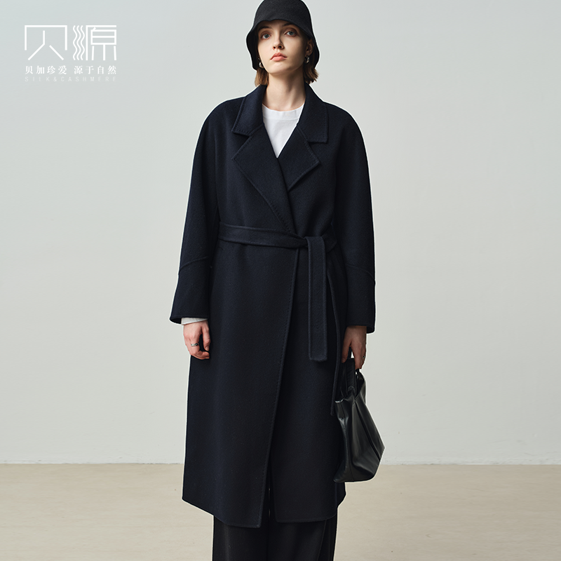 西装 过膝双面羊绒外套 领毛呢子风衣 中长款 纯羊毛双面呢大衣男士