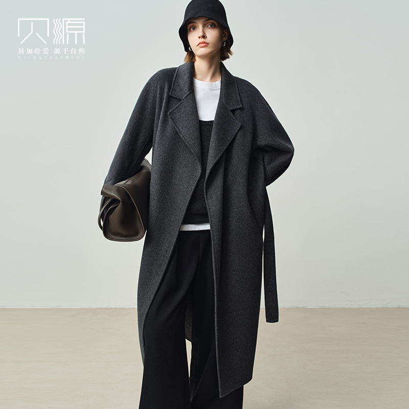 慵懒风双面羊毛大衣女中长款 灰色毛呢外套高级感