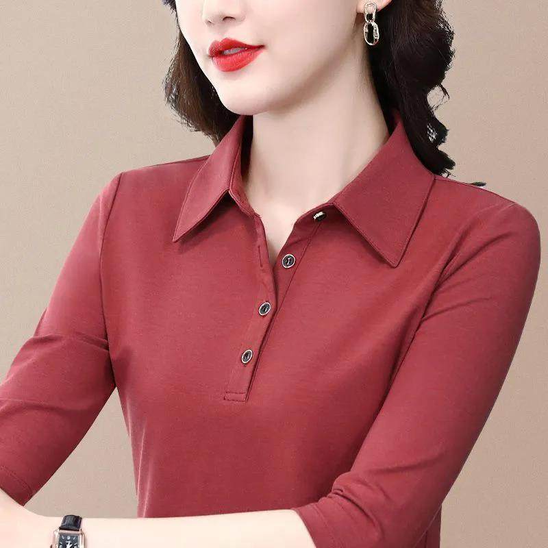 芭拉婷 春秋新款 装 瘦POLO衫 t2025女中 百搭显女正妈妈上衣长袖