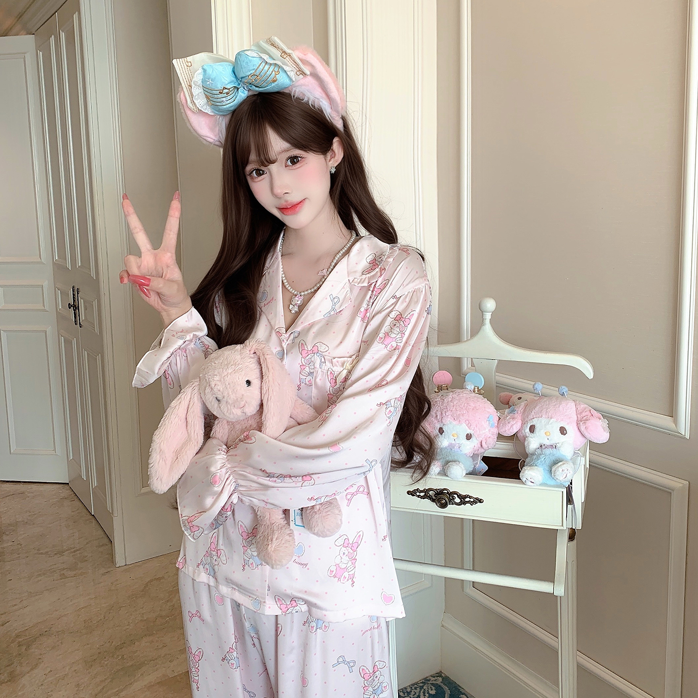 捞捞酱「奶兔莓莓」冰丝睡衣女2025新款 卡通高级感家居服 春秋款