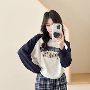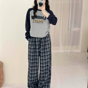 休闲减领 女宽松阔腿裤 显瘦长袖 女格子休闲裤 T恤插肩袖 糖安妮