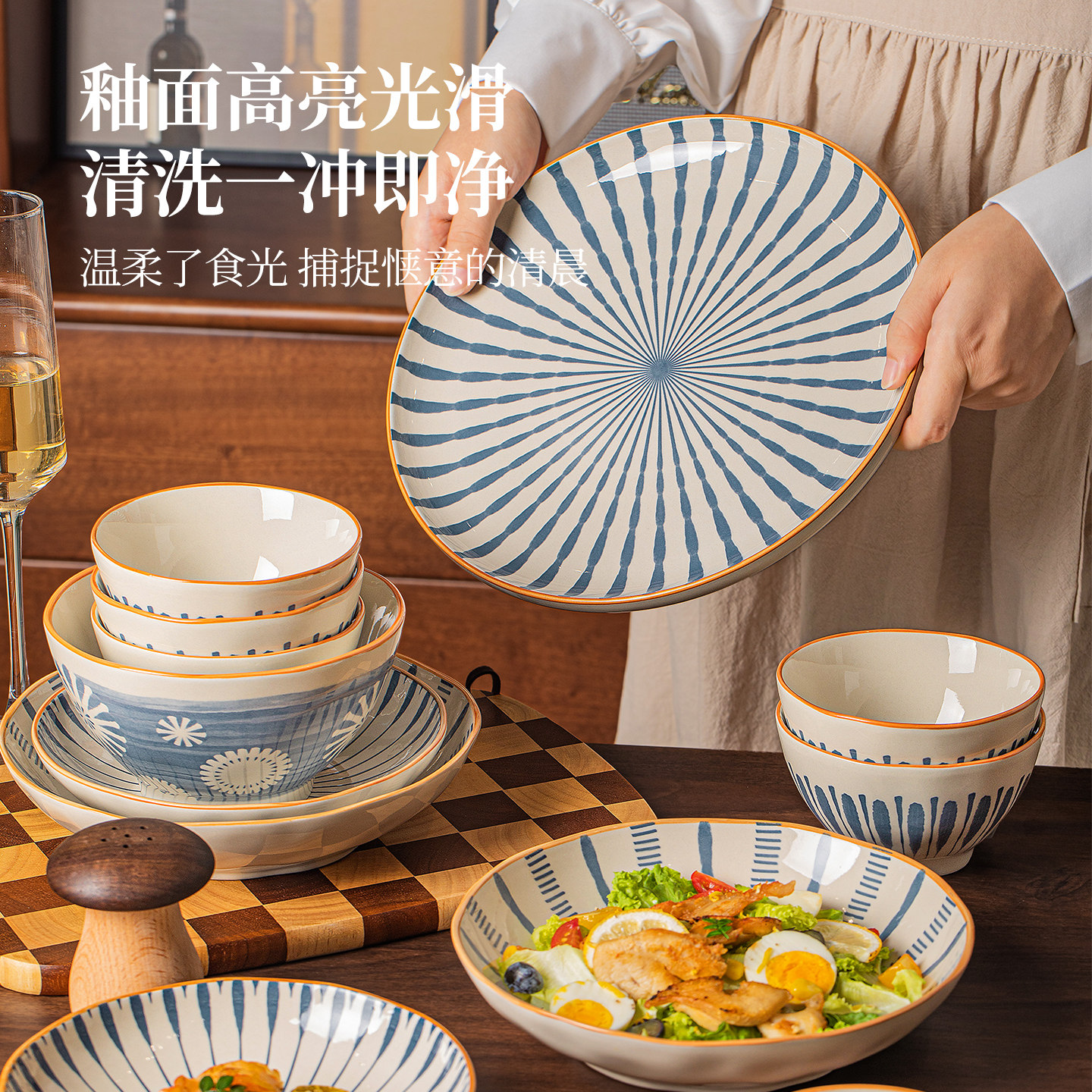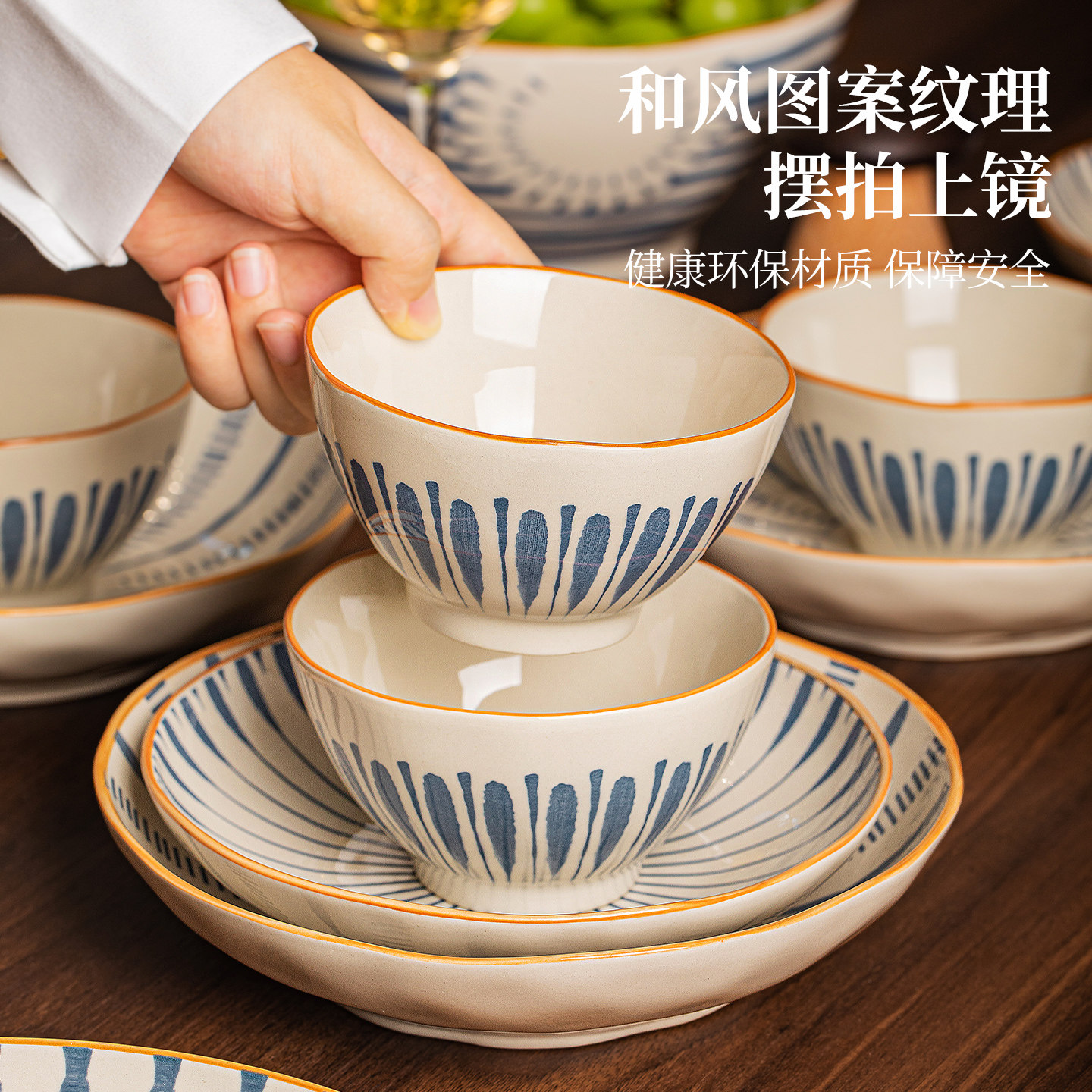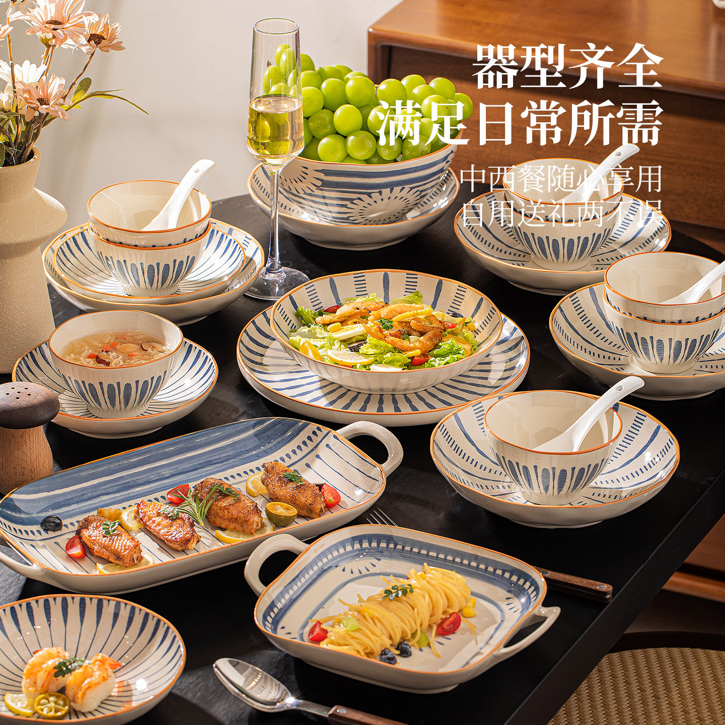 碗盘乔迁 餐具套装 釉下彩景德镇碗碟套装 侘寂复古中古风高颜值日式