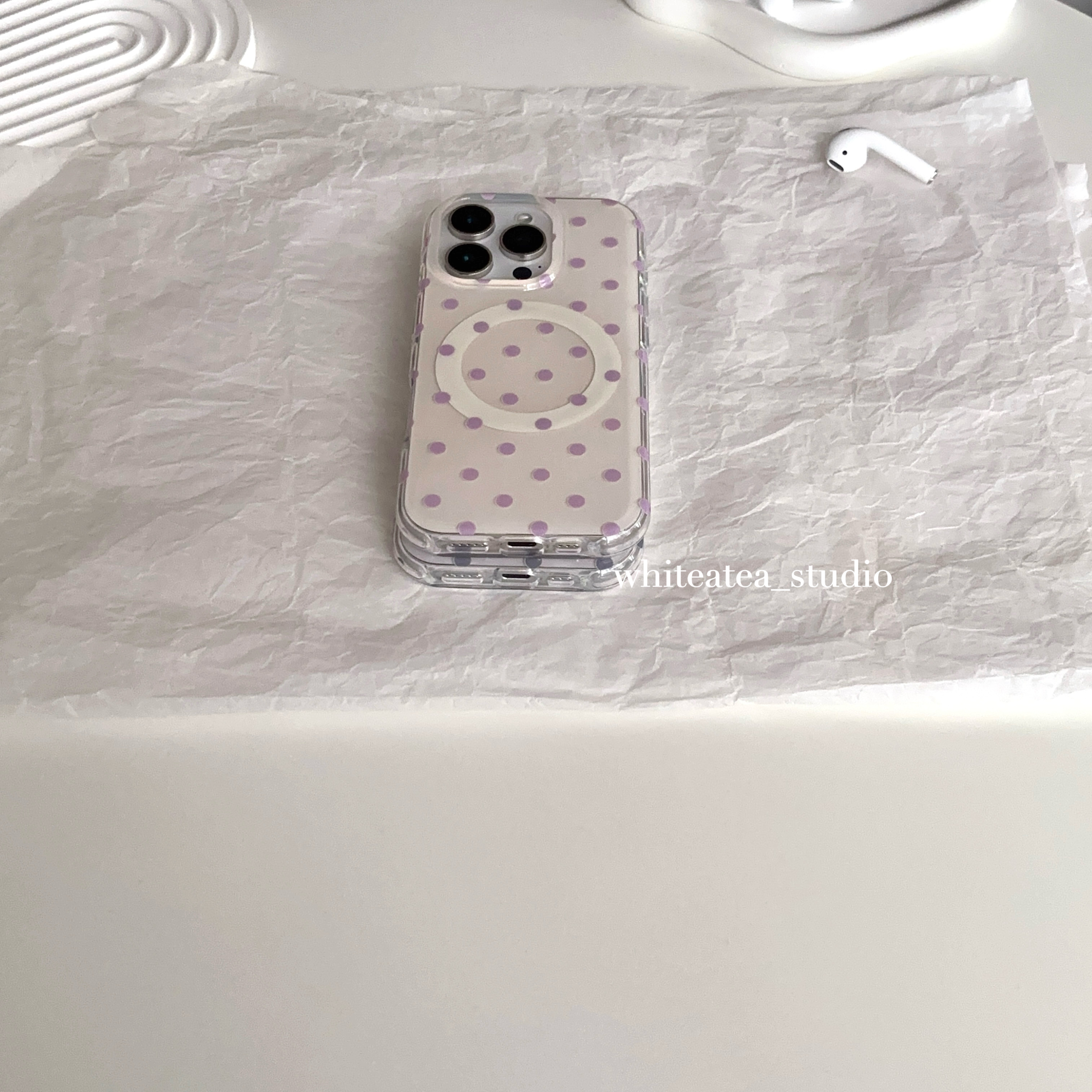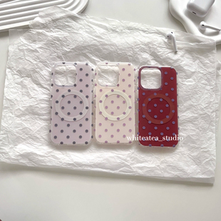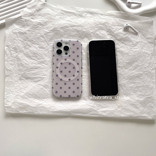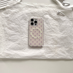 高级感13保护套温柔少女秋季 盐白茶ins经典 极简清新撞色波点磁吸适用苹果16ProMax手机壳iPhone15小众14新款