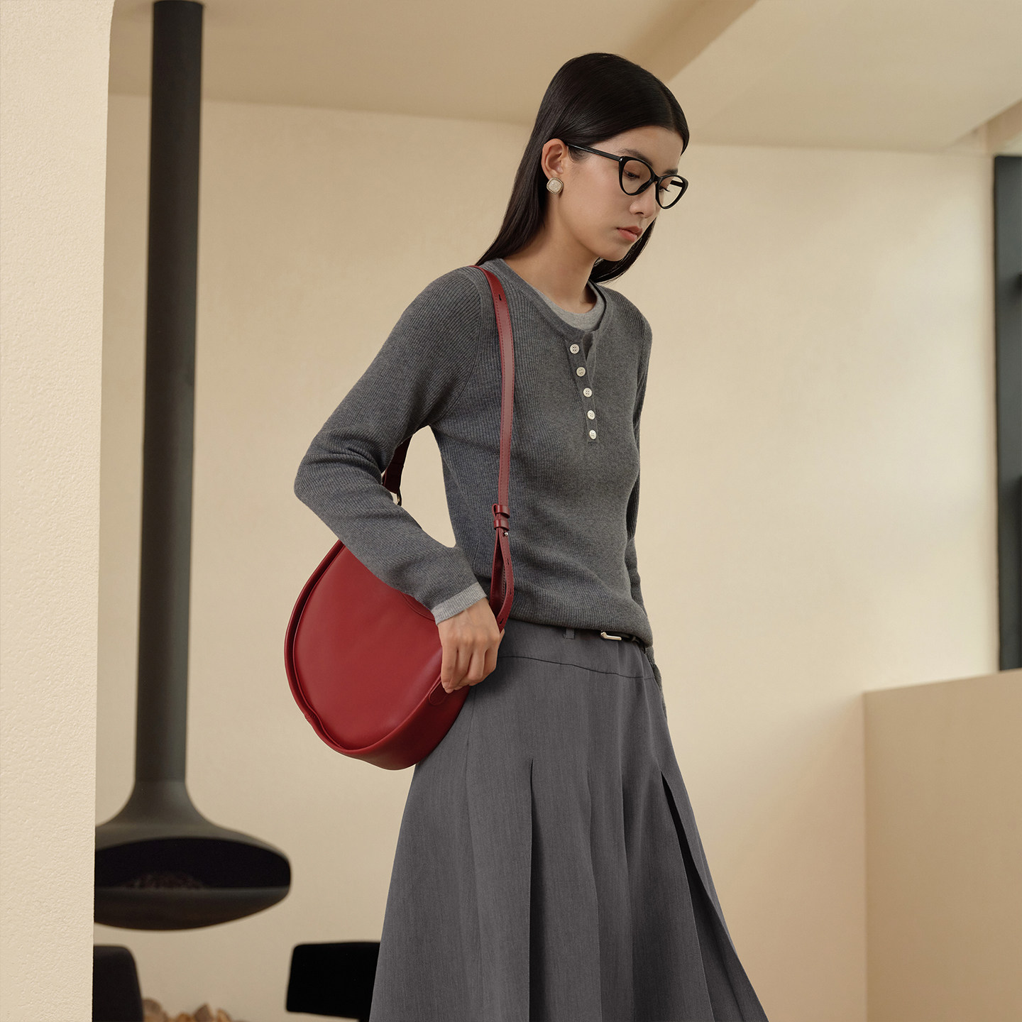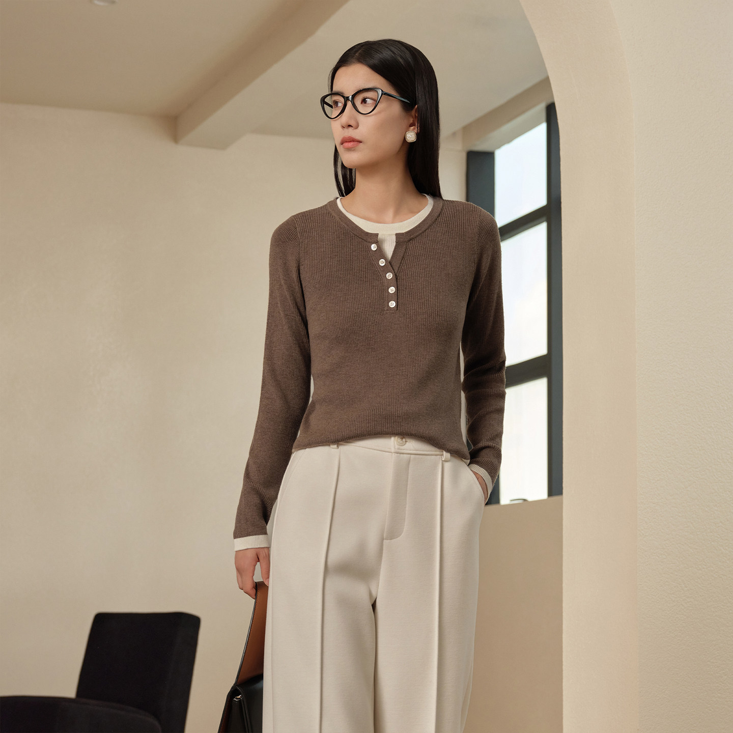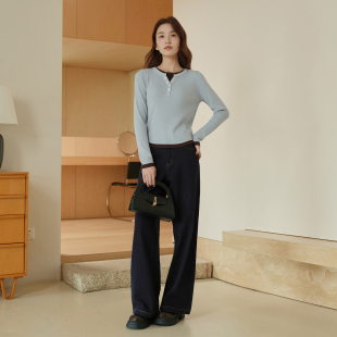 商场同款 修身 阿依莲假两件毛衣女25冬季 简约针织衫 上衣 新款