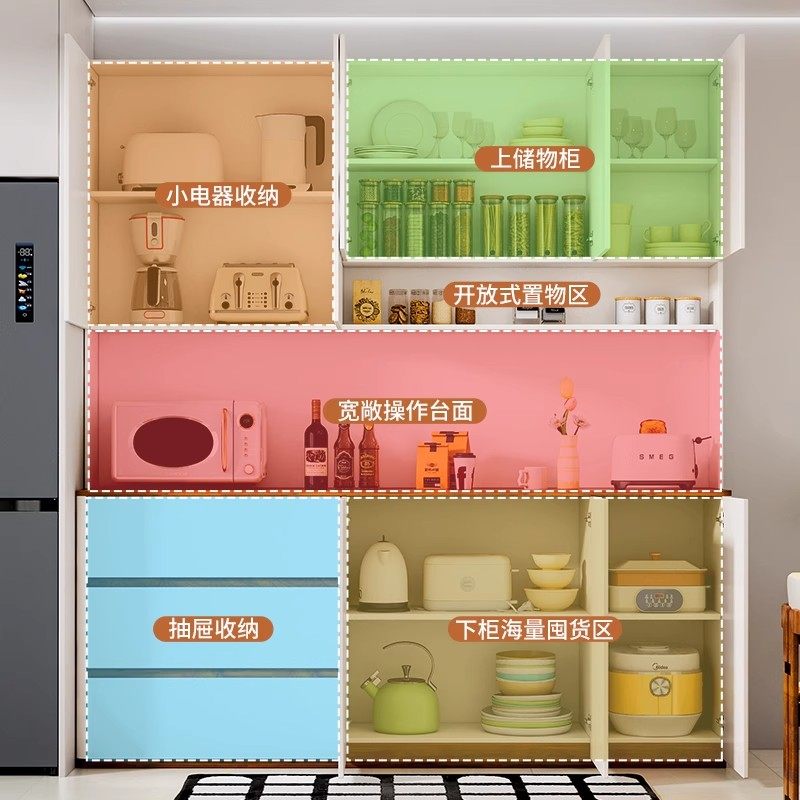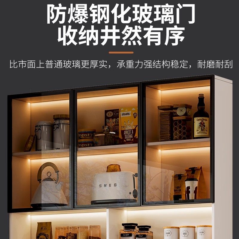餐边柜靠墙一体家用厨房橱柜简易组装 客厅奶油风实木储物柜置物柜