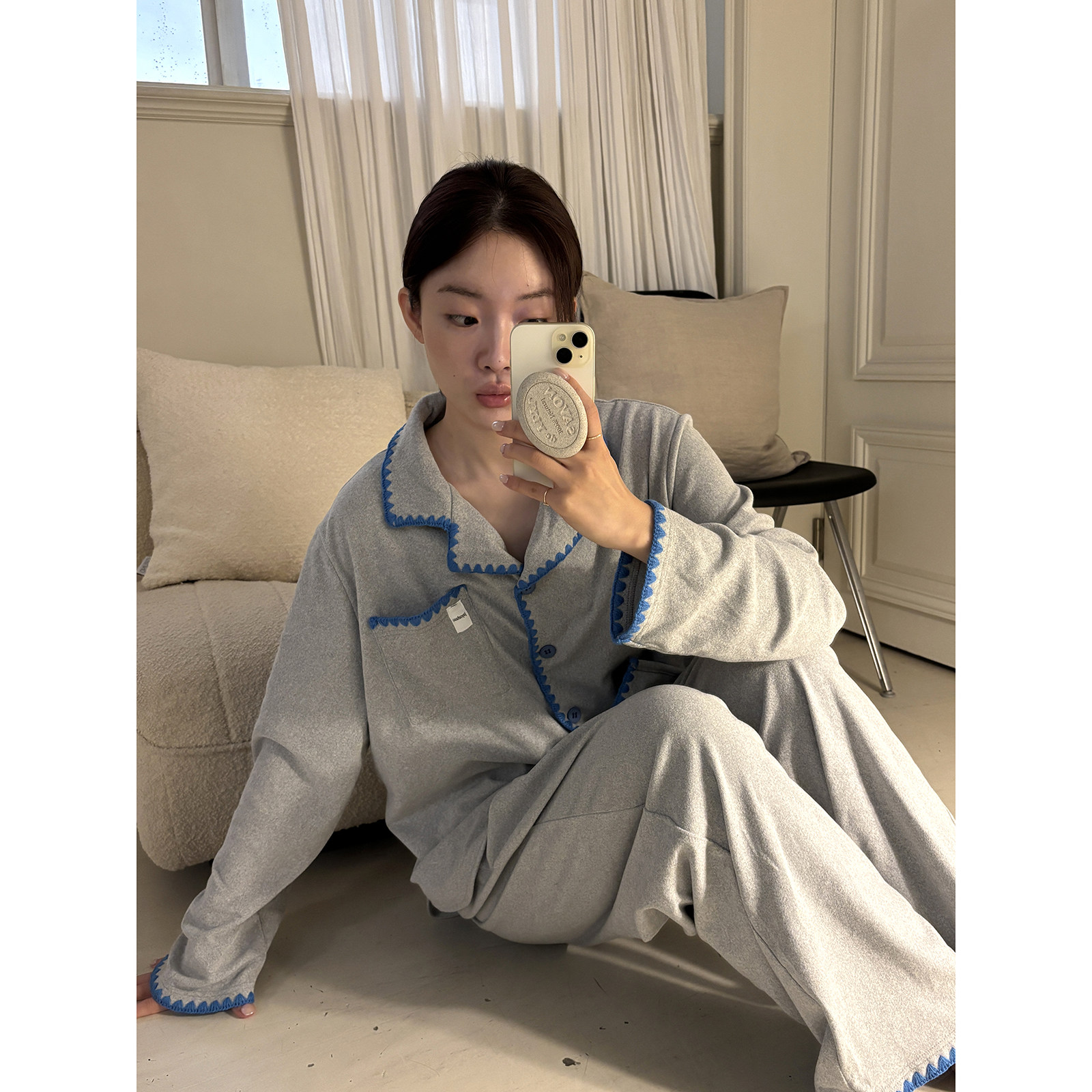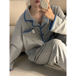 翻领宽松家居服套装 JoyceBra 长袖 简约撞色德绒睡衣女秋冬季 韩版