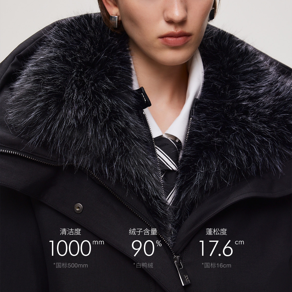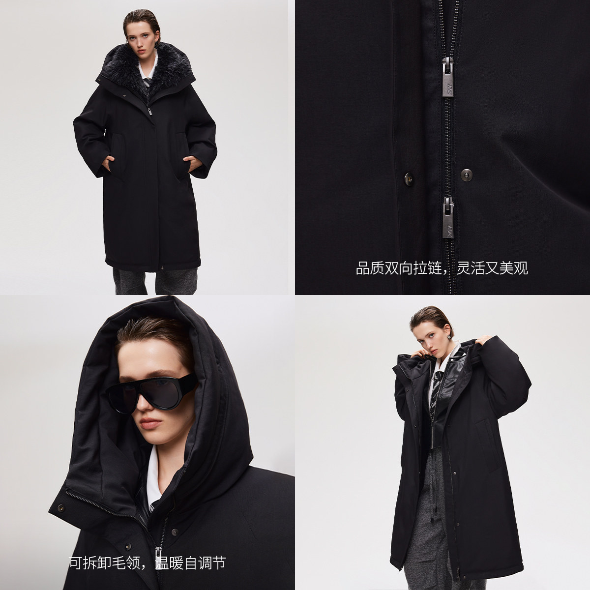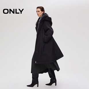 90白鸭绒保暖中长款 新款 冬季 可拆卸毛领连帽羽绒服女 ONLY奥莱