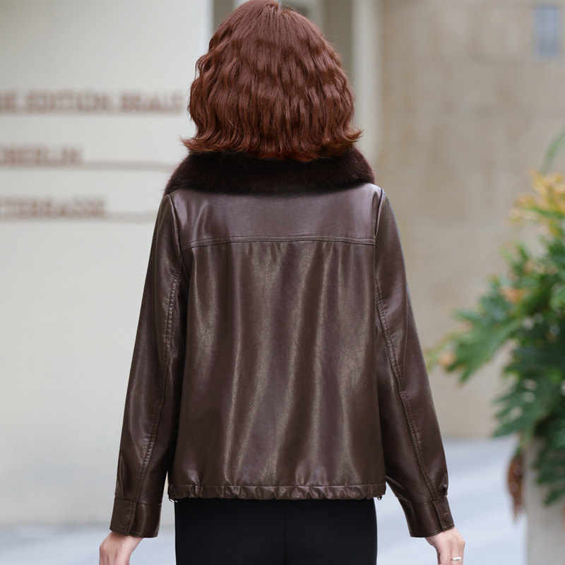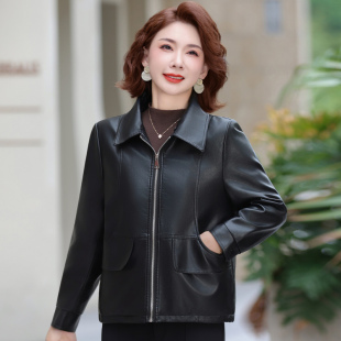 皮衣外套女中老年妈妈秋冬新款 皮夹克加绒保暖50多岁婆婆高端皮袄