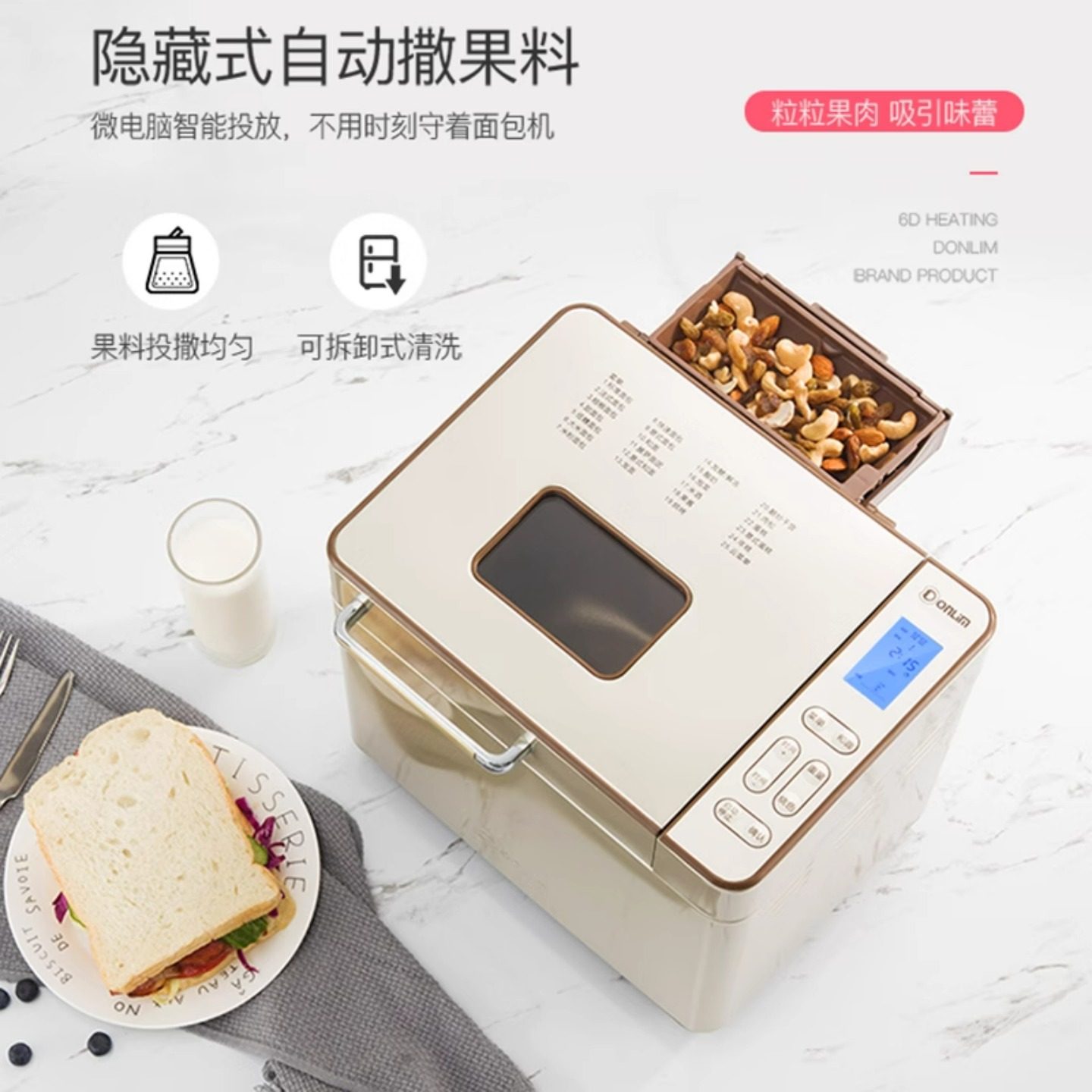 TM018 家用智能全自动不锈钢机身果馅果料面包机 东菱 Donlim
