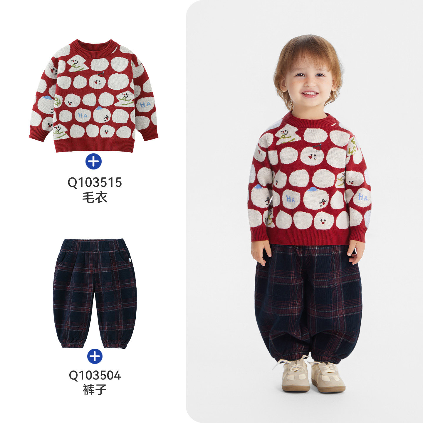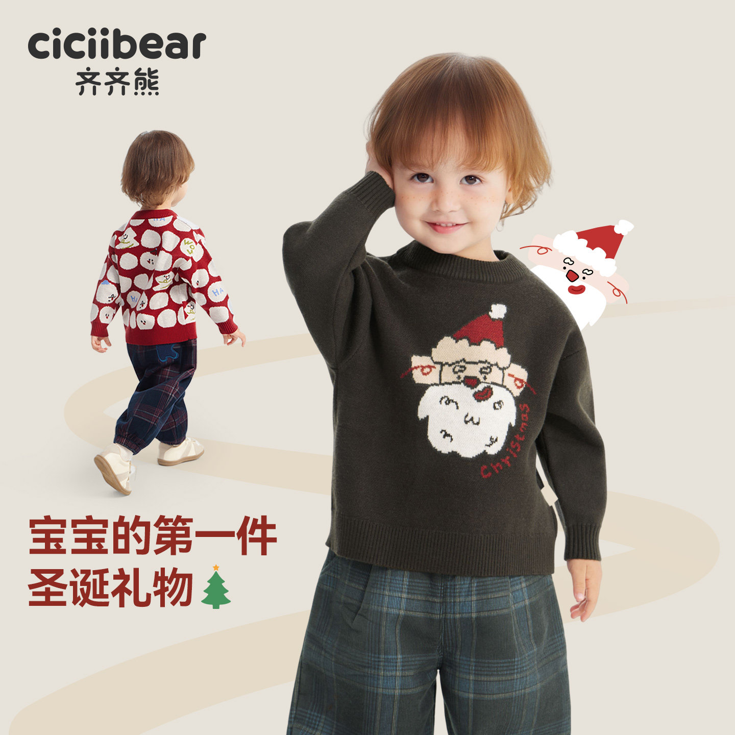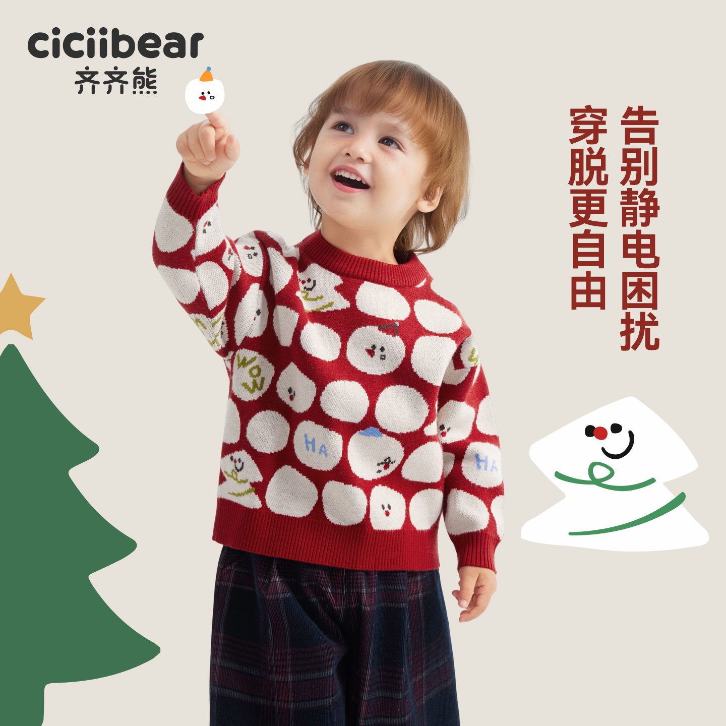 加厚宝宝打底衣儿童针织衫 齐齐熊男童毛衣冬款 新年礼物 圣诞雪人