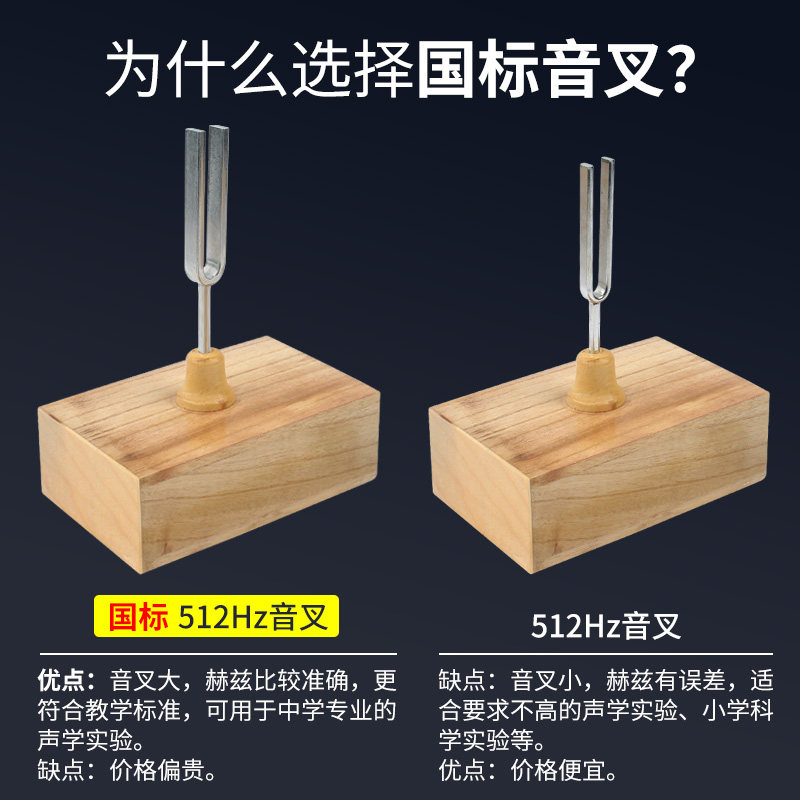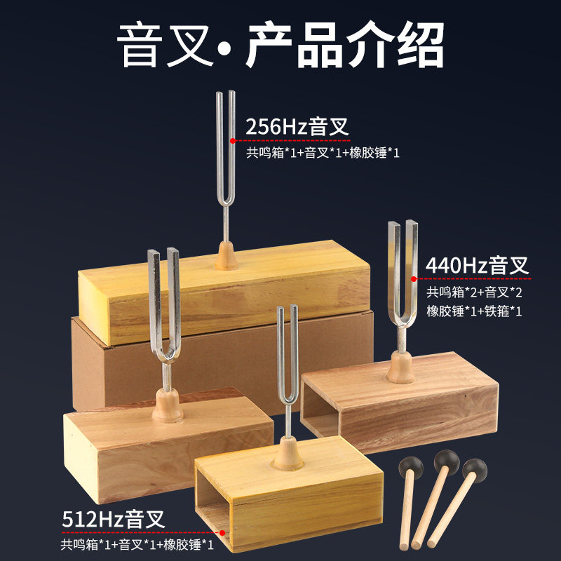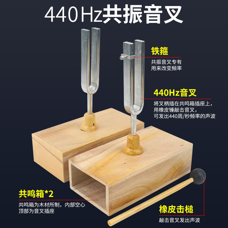 物理声学实验套装 共振音叉440Hz赫兹1对木质底座橡皮锤敲击512赫兹256HZ音叉对比实验乒乓球悬挂教学仪器材