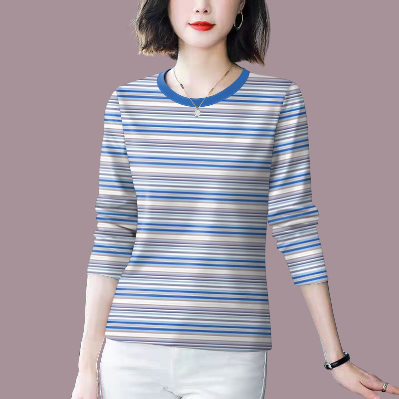 宽松遮肚显瘦T恤女上衣潮 减龄条纹长袖 好品捡漏 早秋上衣女新款