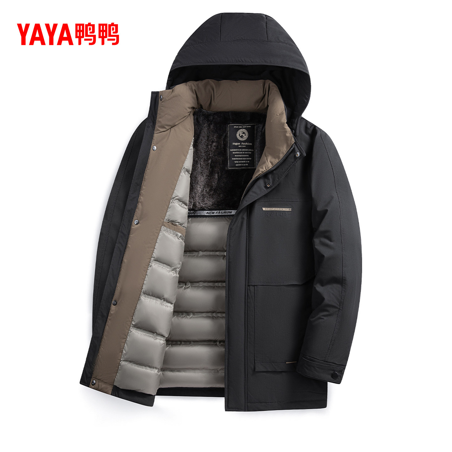 三福2025冬季 假两件连帽羽绒服加厚运动学院风保暖外套514470 男士