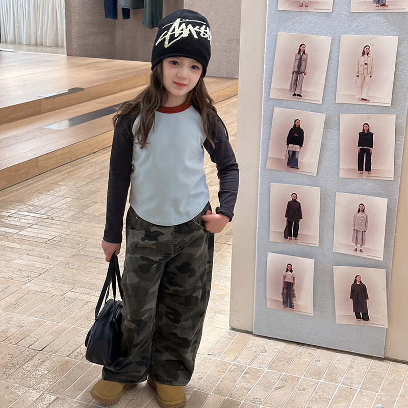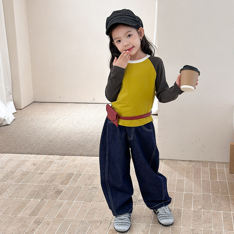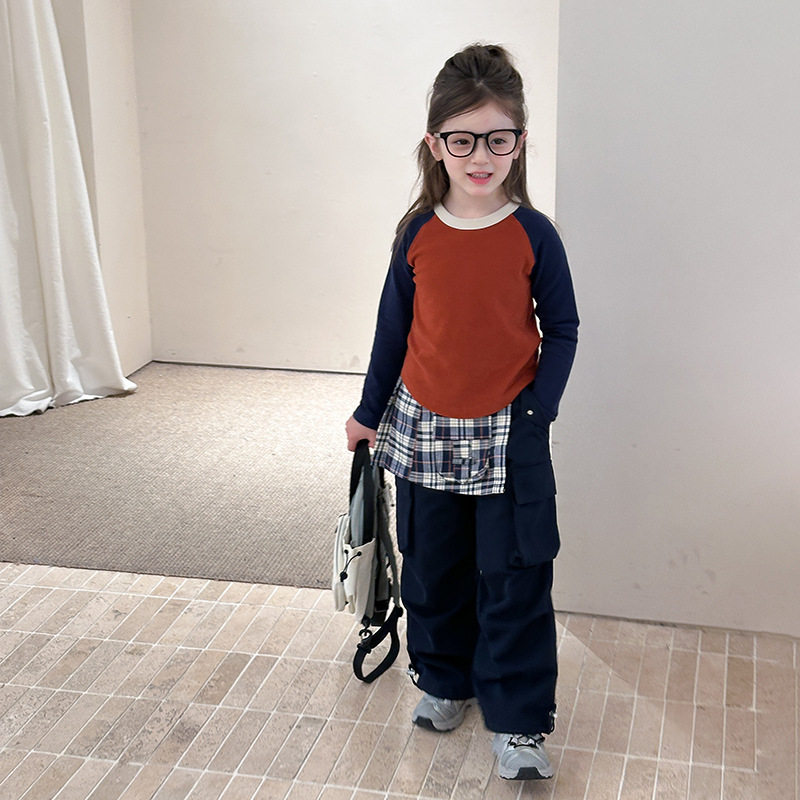 打底衫 辣妹插肩T恤儿童长袖 25G040 多色短款 Yumi妈中大女童春季
