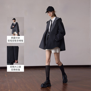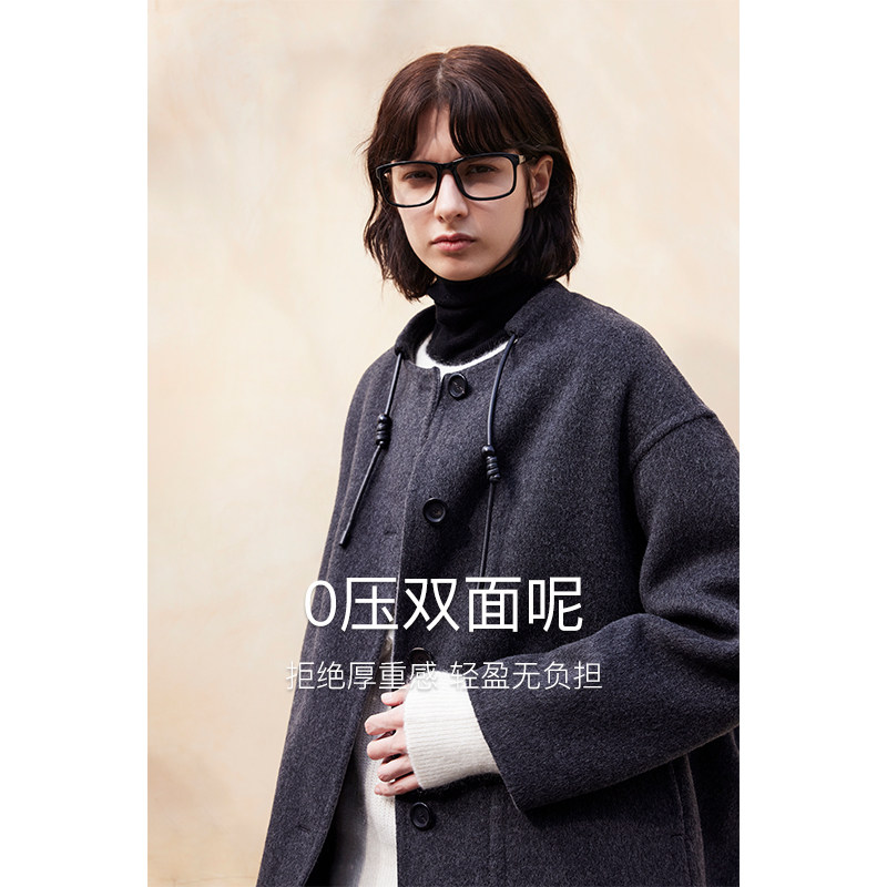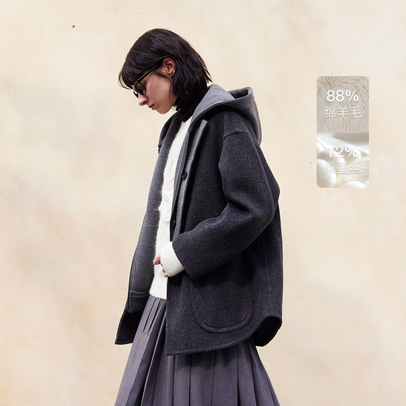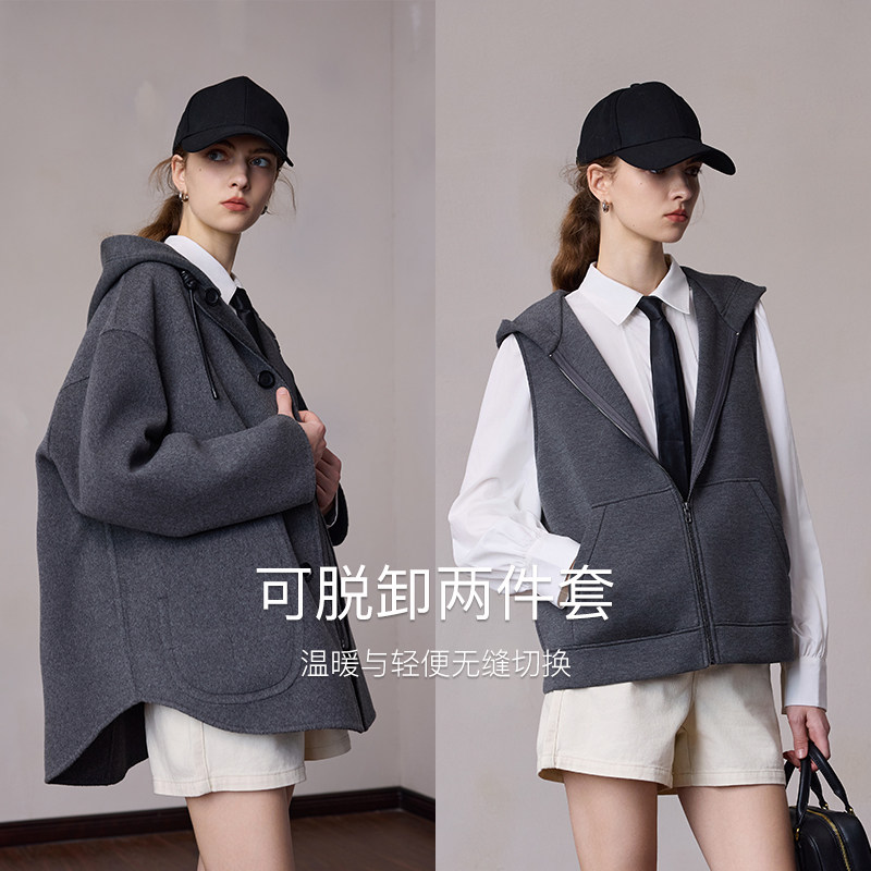 MSLAN零压毛呢 含桑蚕丝休闲连帽两件套双面呢马甲外套 25冬季