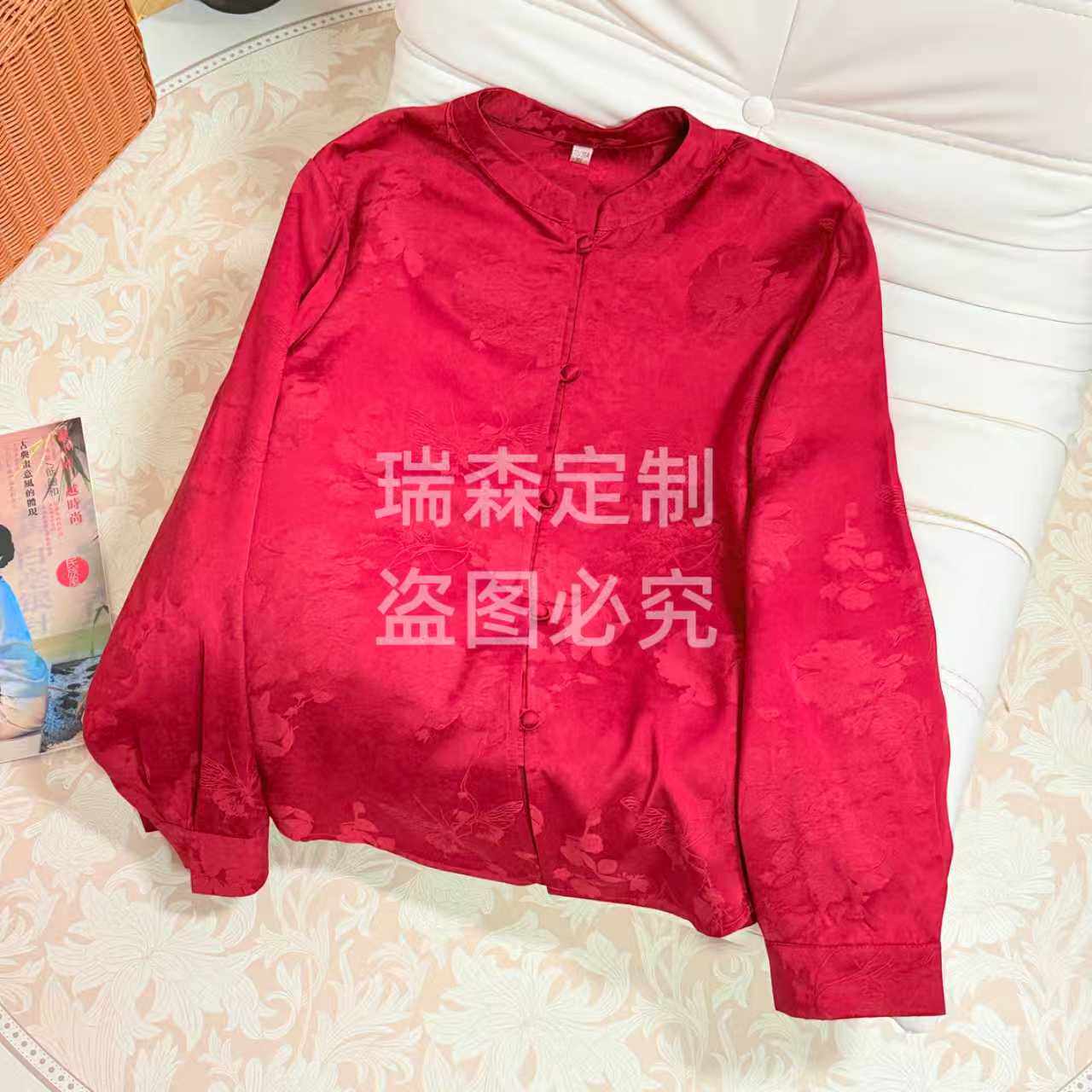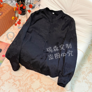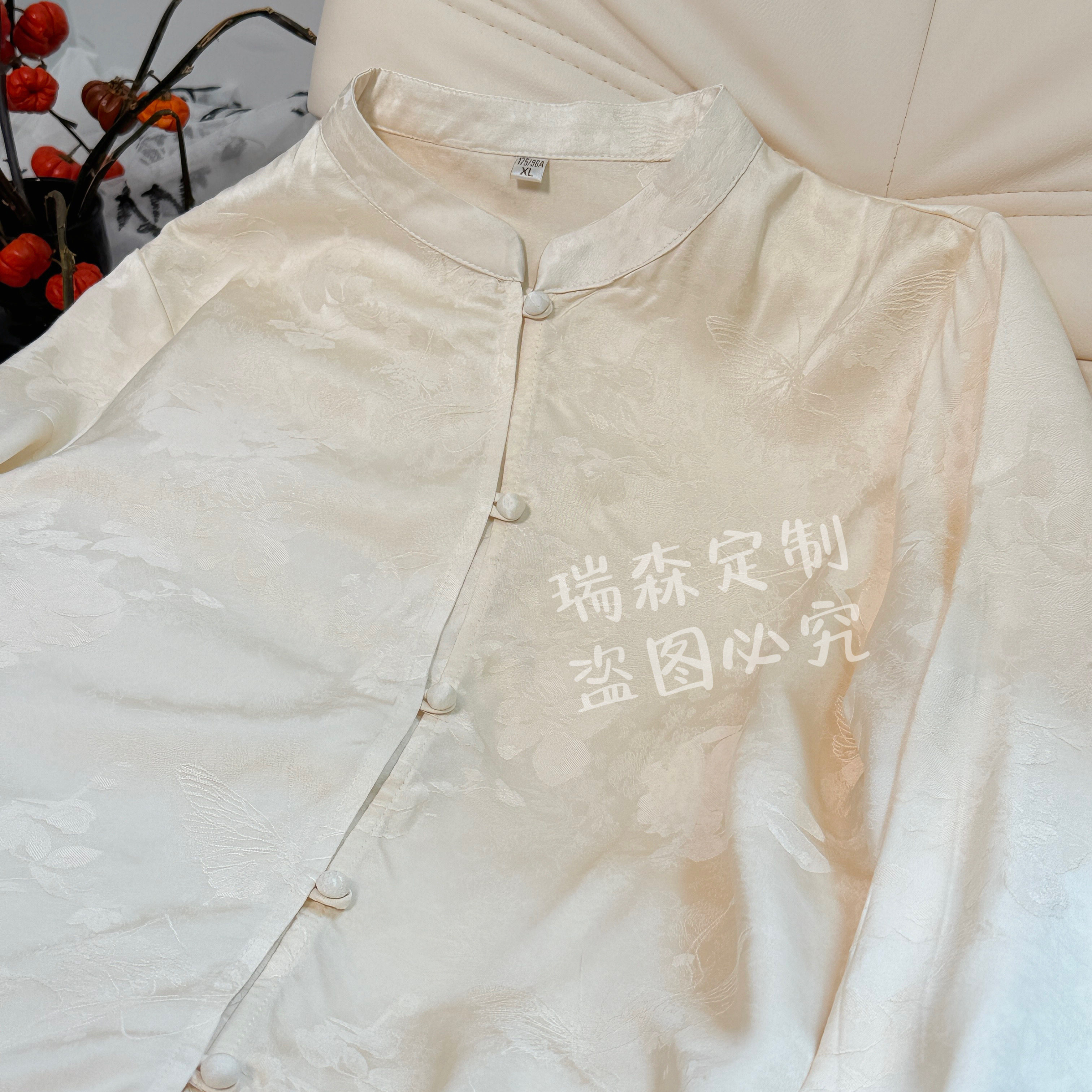 中式 胸围100 国风蝶恋花立领衬衫 上衣 衣长60 长袖 796
