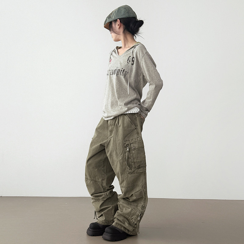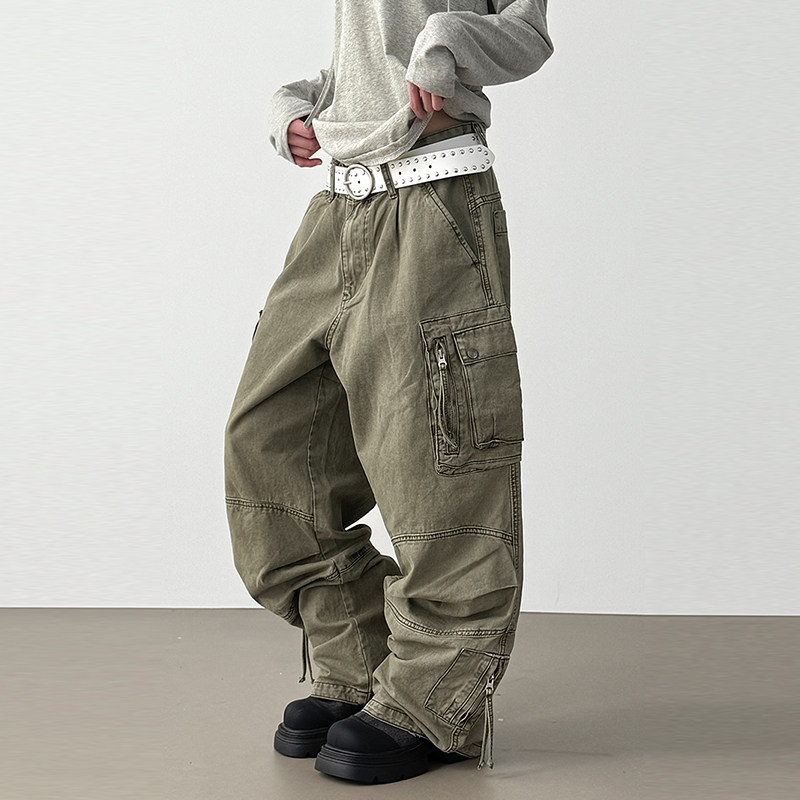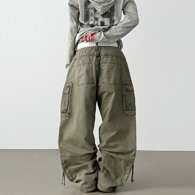 multi pocket 裤 dyed 做旧口袋工装 cotton unisex 韩代25 pants