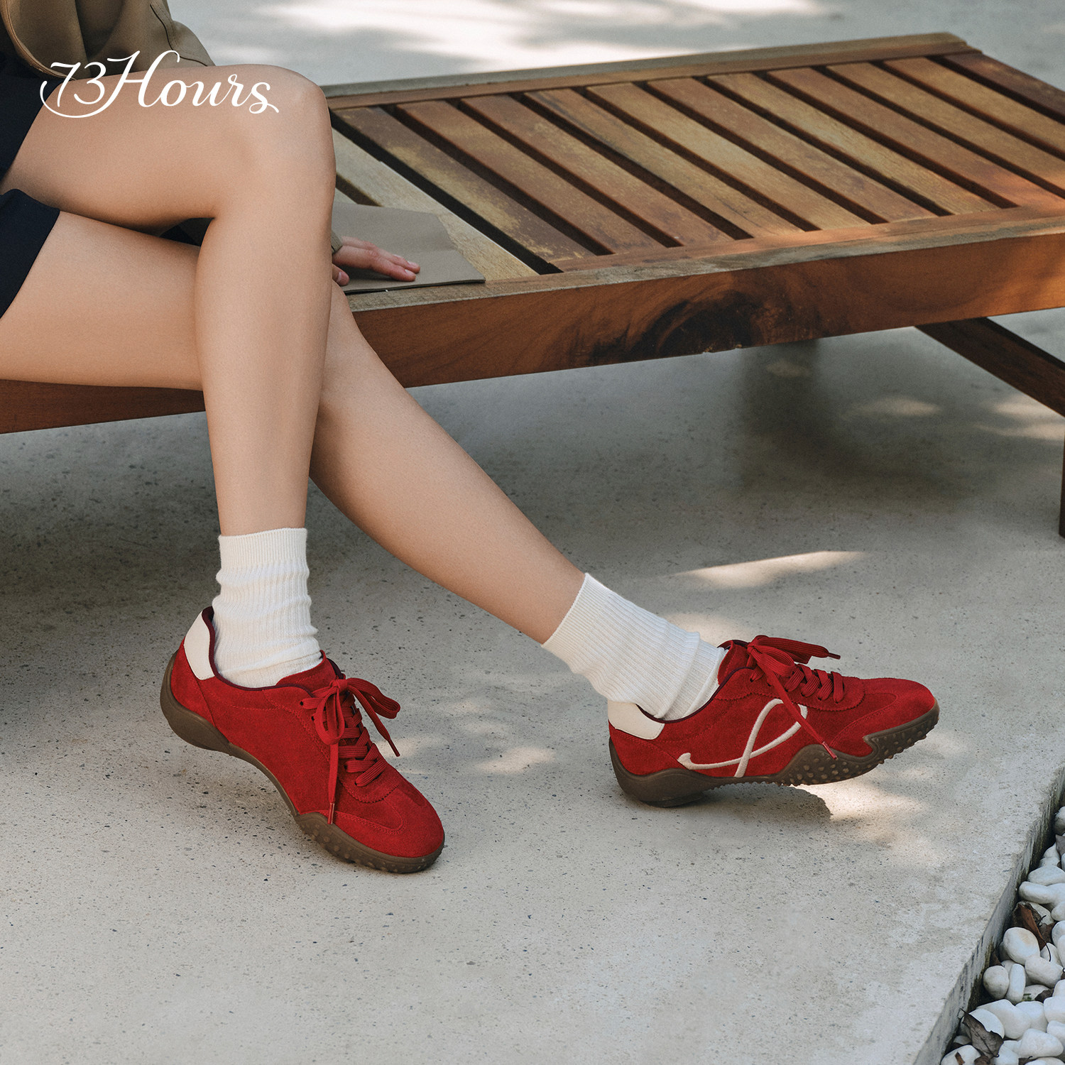 新款 俏皮节奏秋季 复古红色德训鞋 休闲鞋 明星同款 板鞋 73hours女鞋