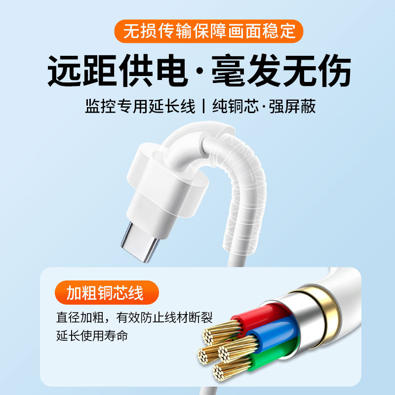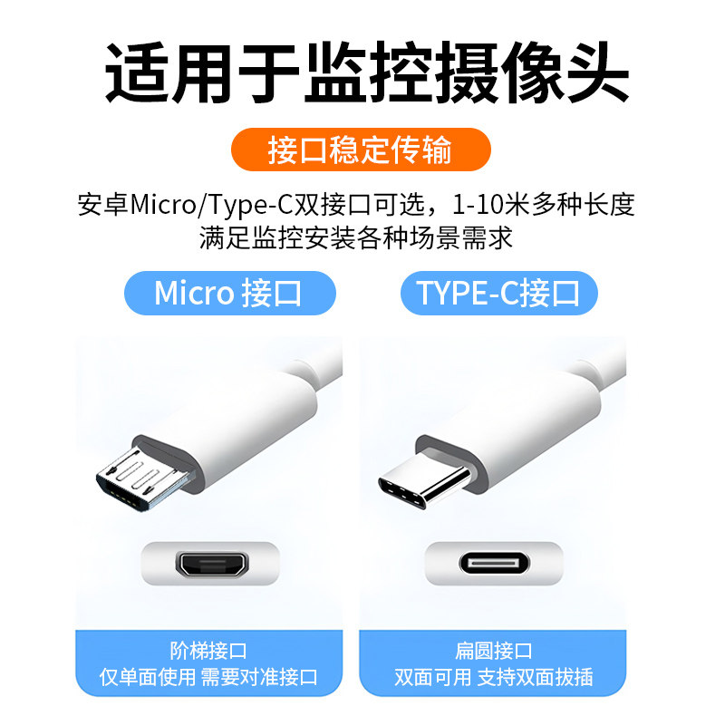 适用于萤石云监控摄像头电源线加延长5v1a充电头数据线配件typec适配小米360乔安海康威视适配器摄像头专用线