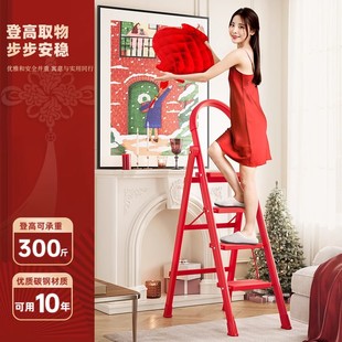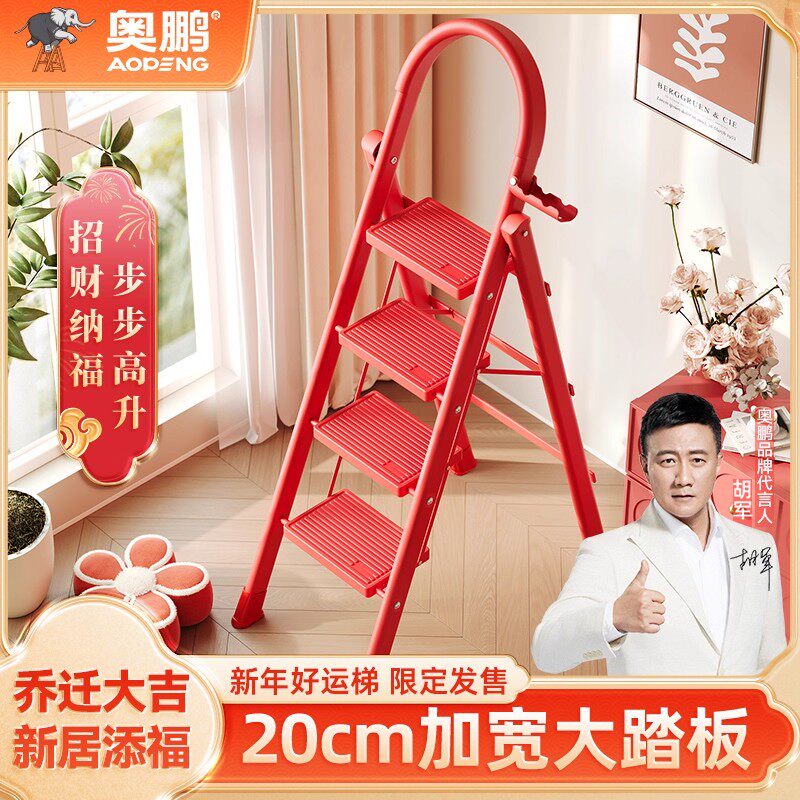 奥鹏乔迁之喜家用梯子折叠伸缩多功能加厚人字梯登高搬家红色楼梯