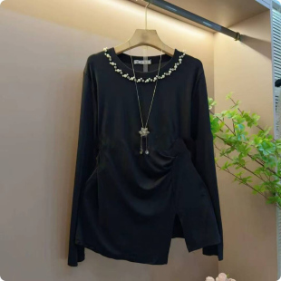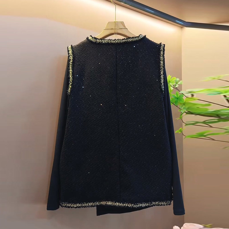 爆款 打底衫 小香风重工钉珠亮片马甲大码 胖mm百搭长袖 女装 欧货秋季