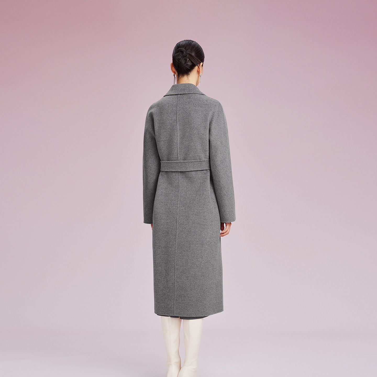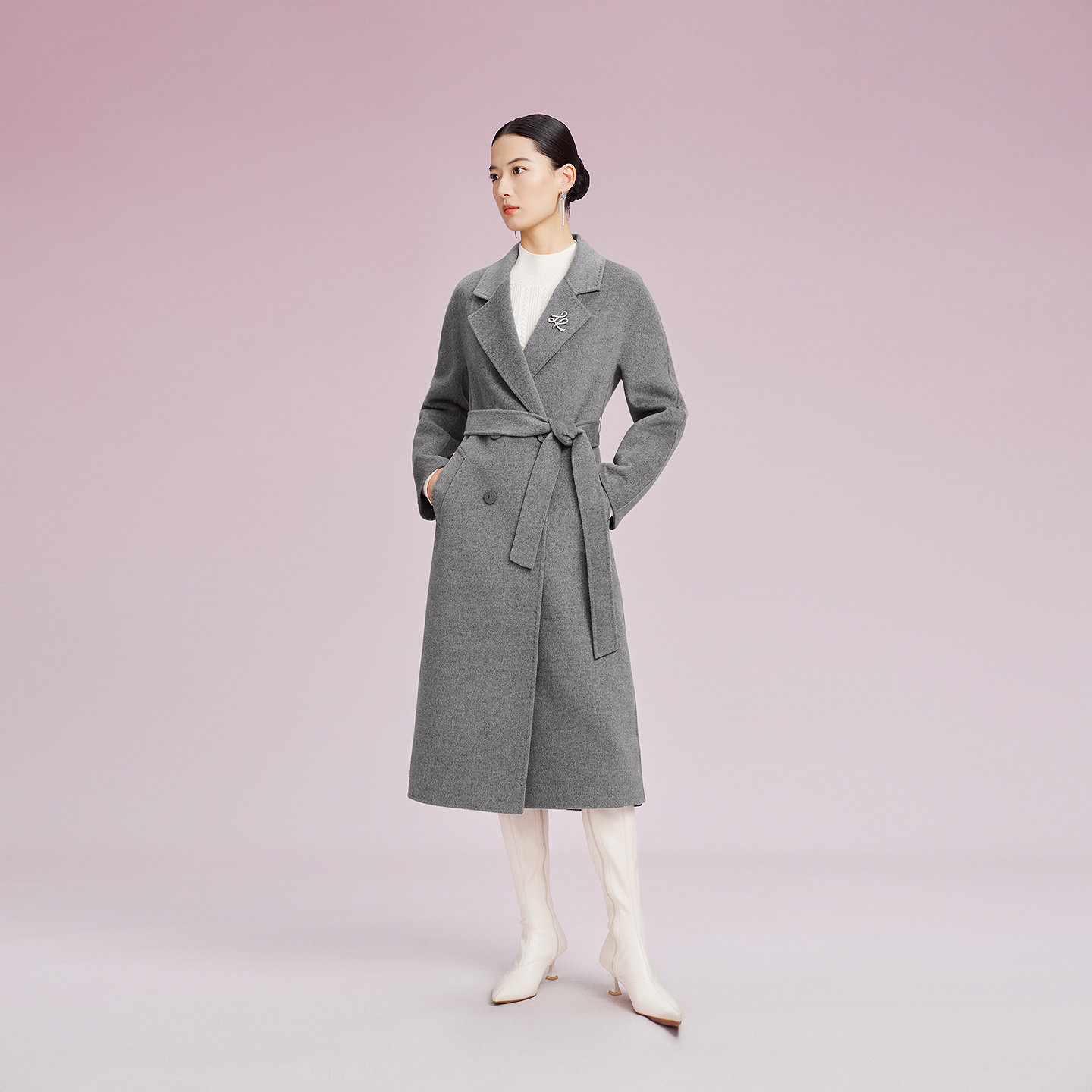 气质系带收腰毛呢大衣 Lakoradior拉珂蒂优雅女秋冬新款 羊毛