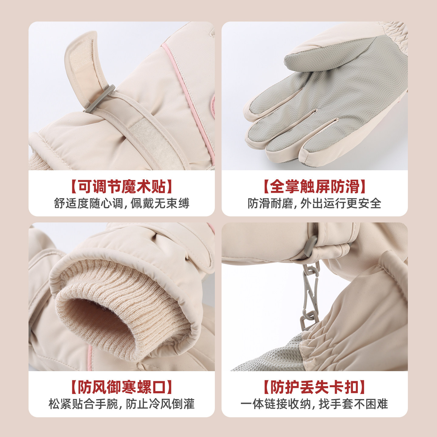 儿童手套男童户外冬季 骑行保暖防风加厚女童小孩玩雪防水滑雪手套