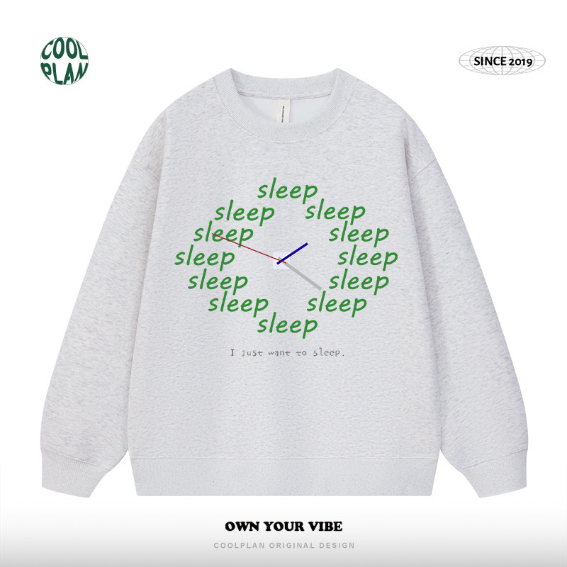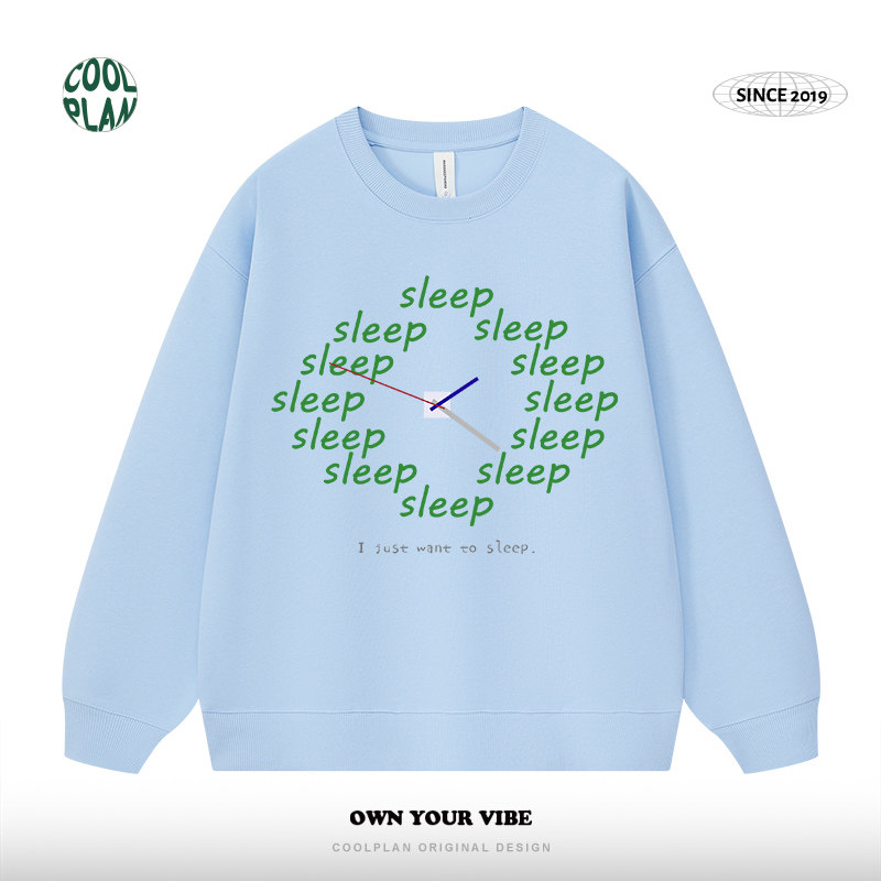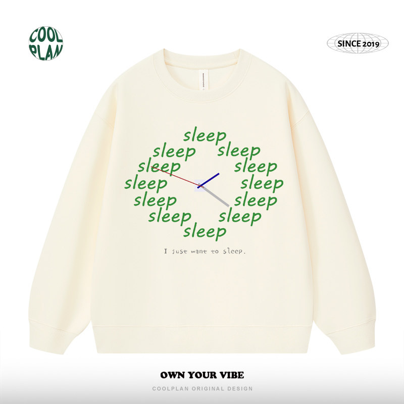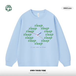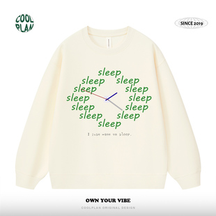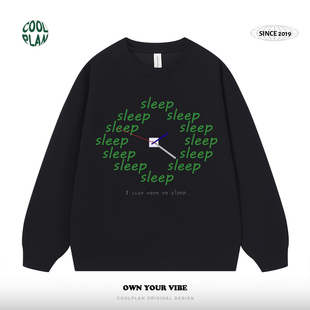 我只想睡觉松弛感 字母时钟慵懒风圆领卫衣男女宽松重磅上衣 美式