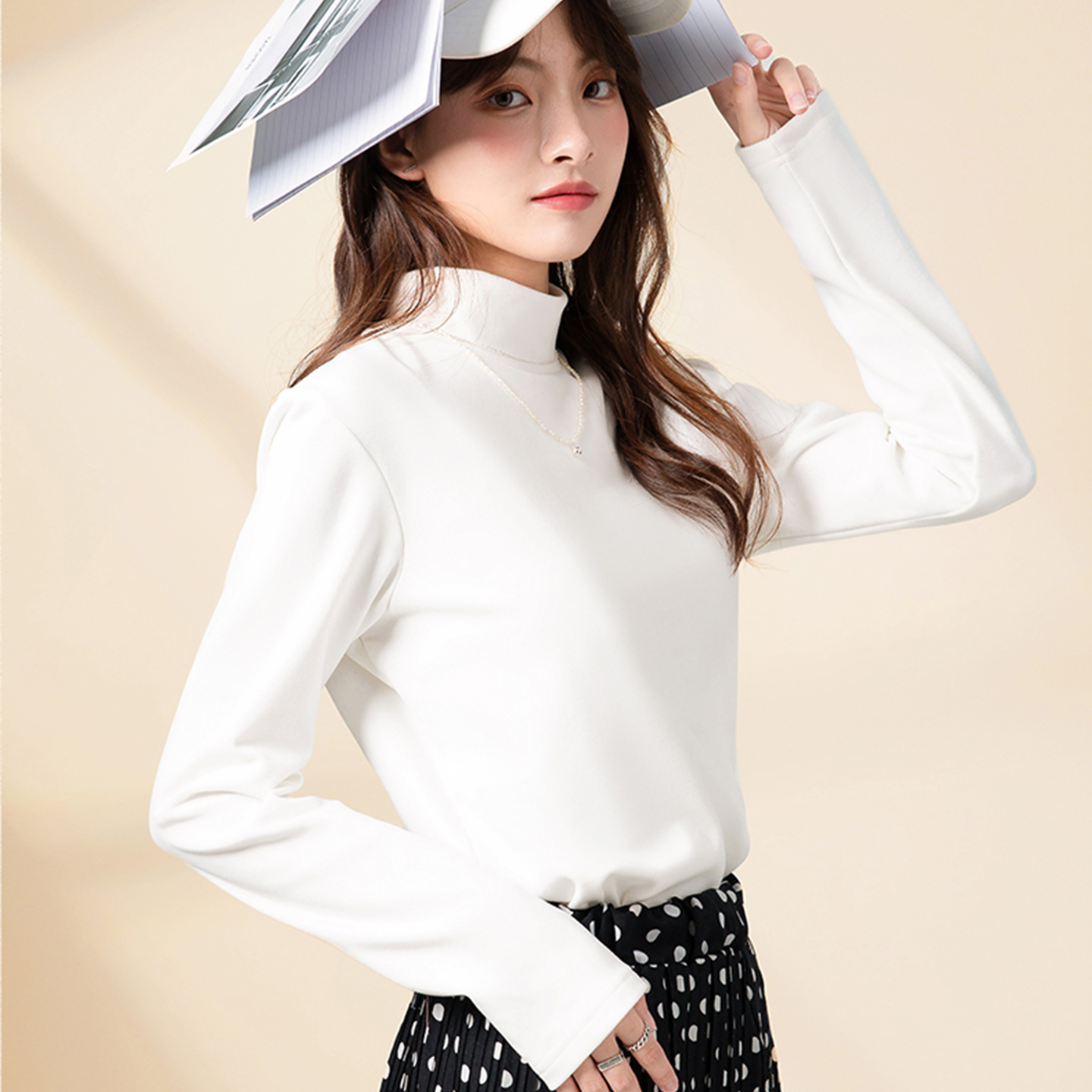 小个子加绒上衣半高领长袖 冬季 t恤 女2025新款 LBP真维斯白色打底衫