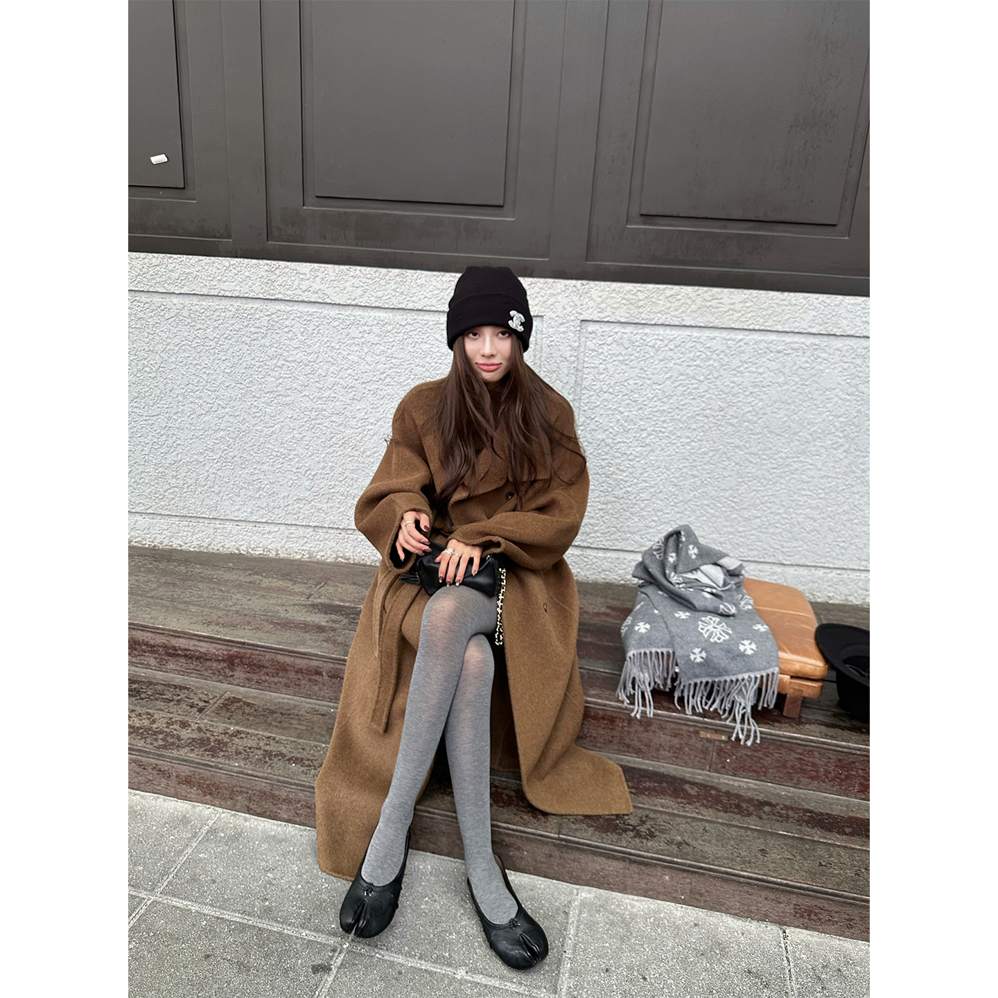 NanaByNana奢级20羊绒80羊毛立领双面呢大衣女冬廓形长款 毛呢外套