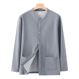 宽松棉毛衫 对襟系扣上衣秋冬加肥大码 秋衣男士 中老年德绒保暖开衫