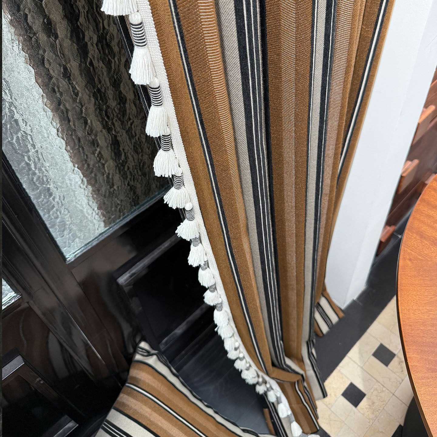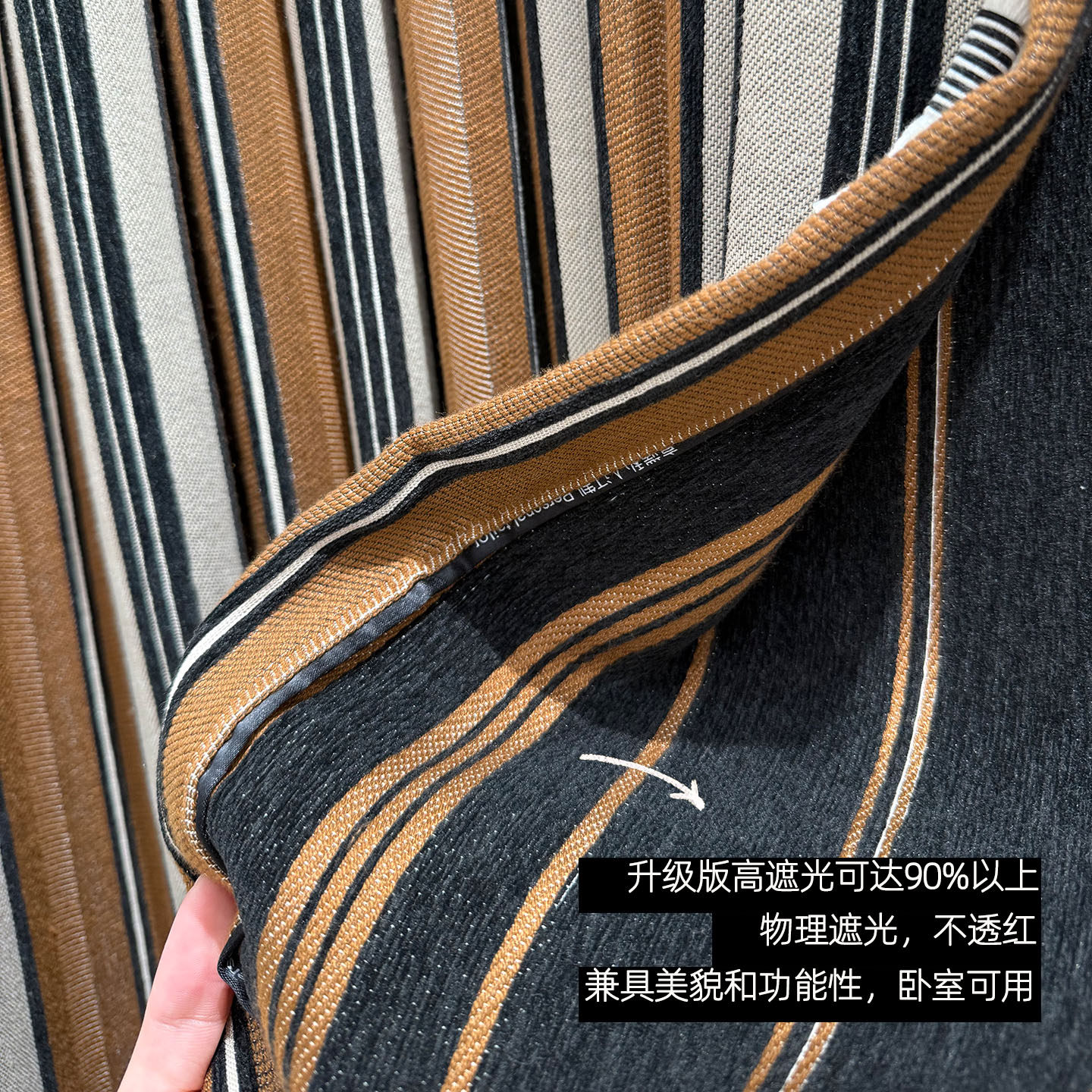 巴黎画报 复古竖纹棉麻遮光窗帘客厅卧室高级感 中古风包豪斯法式
