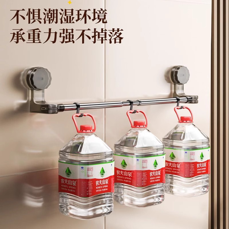 吸盘式 毛巾架单杆卫生间毛巾杆免打孔厨房浴室晾毛巾挂杆厕所挂架