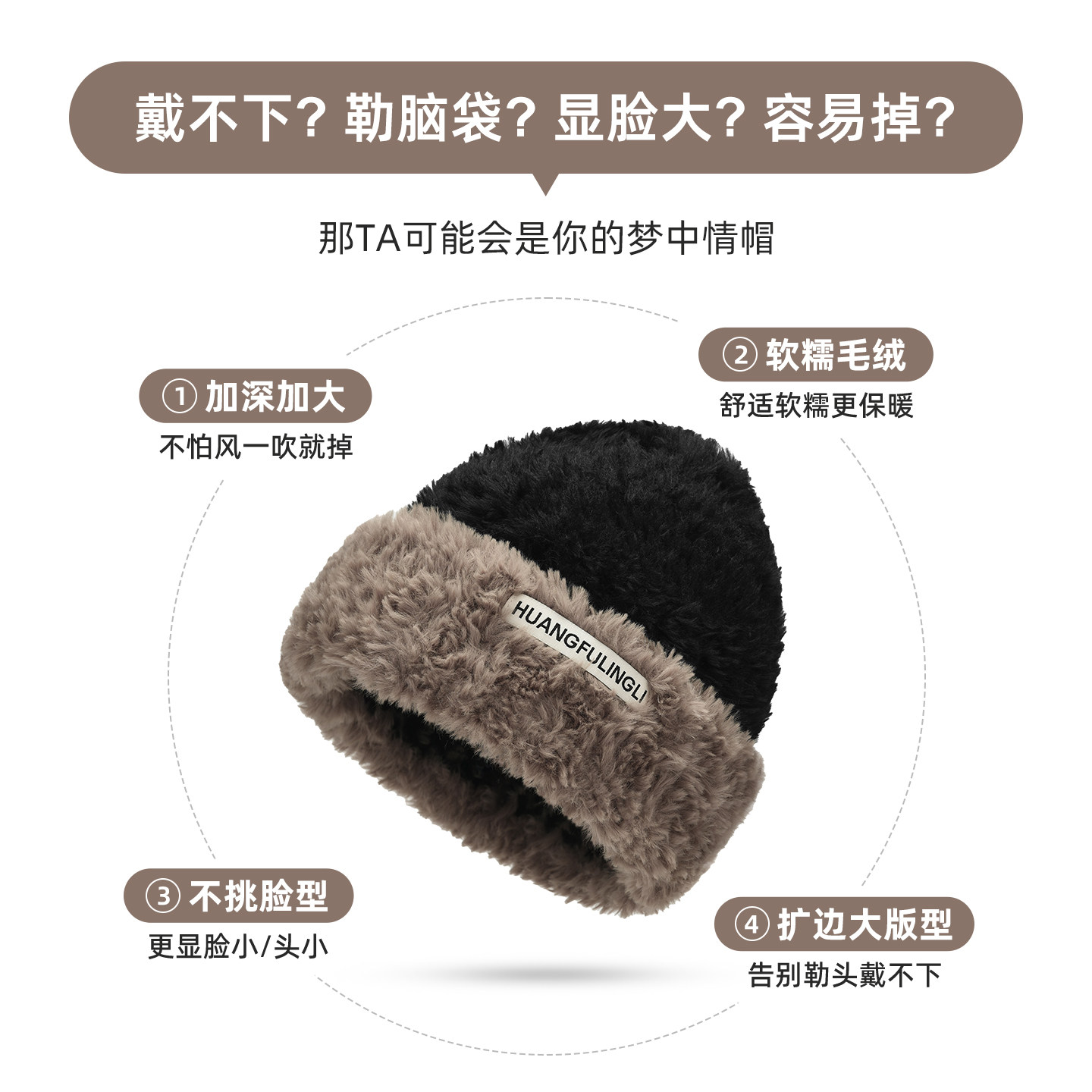 宝宝毛绒帽子秋冬季 保暖加厚针织套头帽男女婴儿小月龄护耳毛线帽