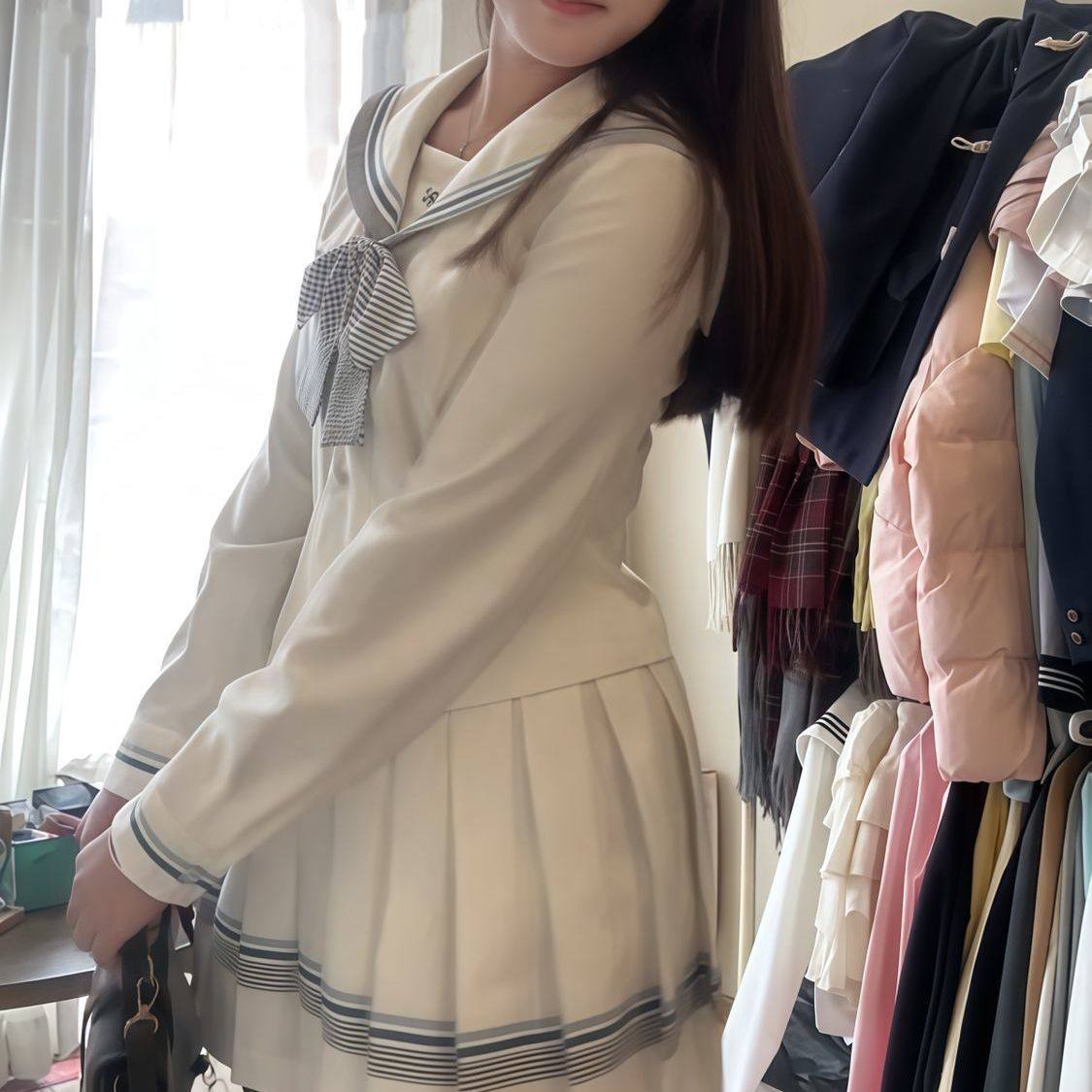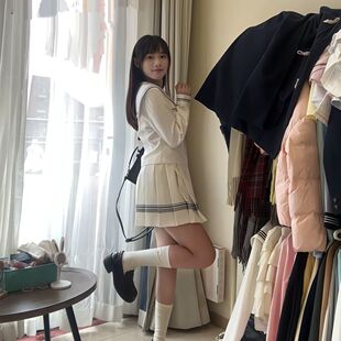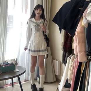 lulucake小栀长袖 女 水手服收腰jk制服中间服秋日系白色学院风套装