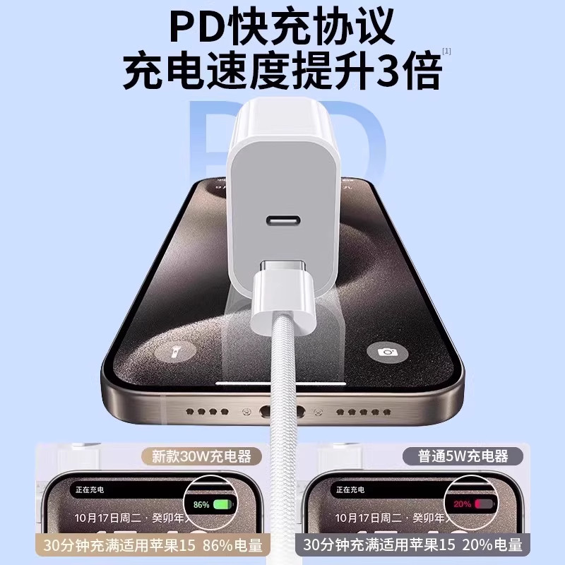 16promax手机30W充电器头14 适用于苹果充电头快充iPhone15 12plus平板PD45W闪充原20W套装 国家3C认证
