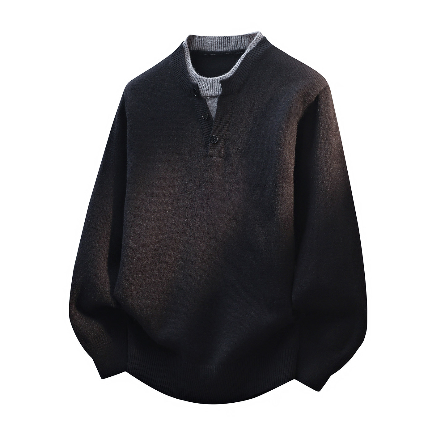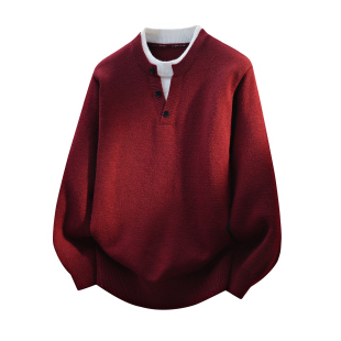 GENIOLAMODE春季 慵懒简约拼接毛衣休闲上衣 男女生假两件v领针织衫