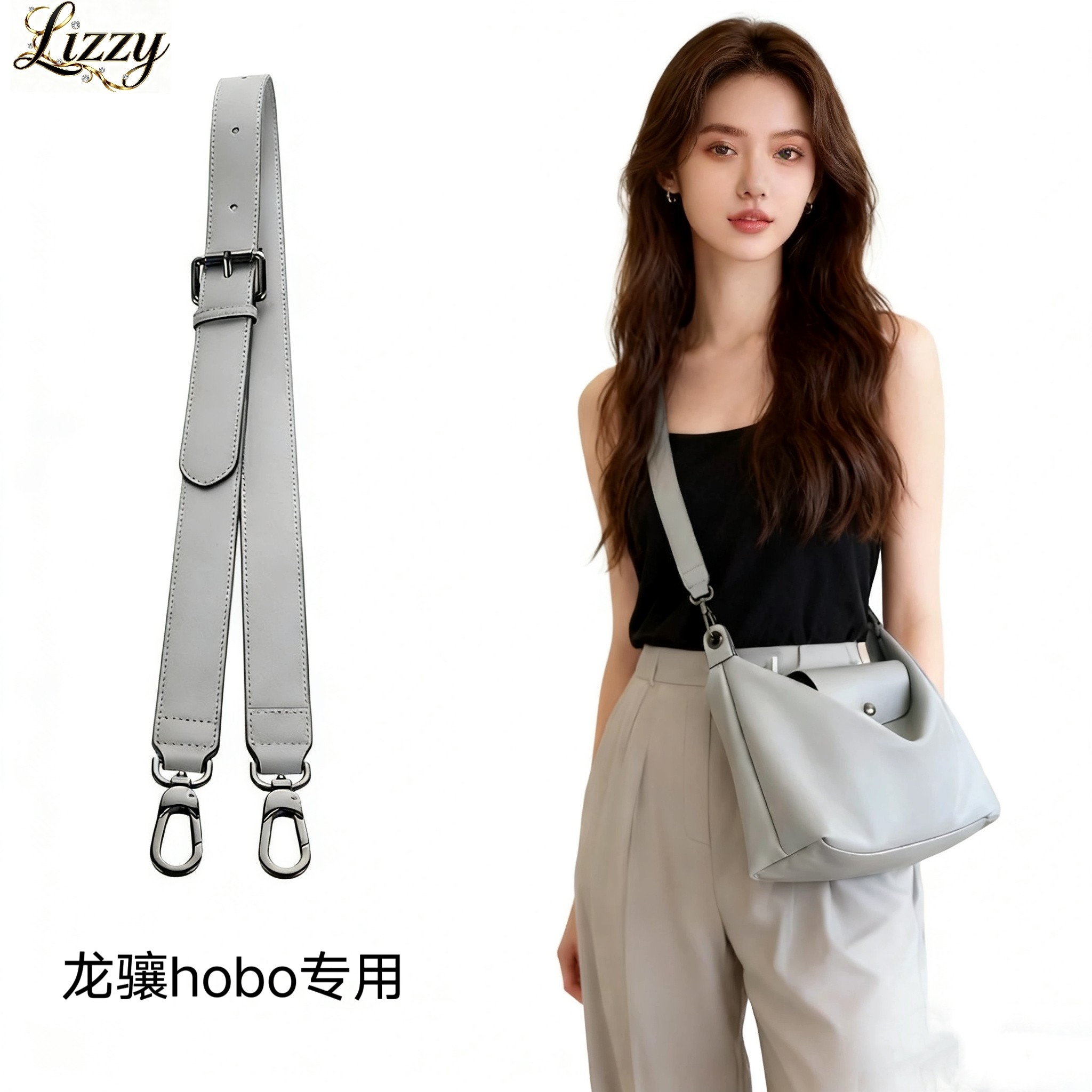 适用于龙骧hobo延长链单肩带可调节包带lonchamp改造斜挎灰色肩带