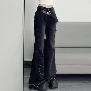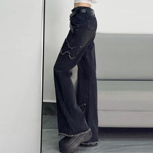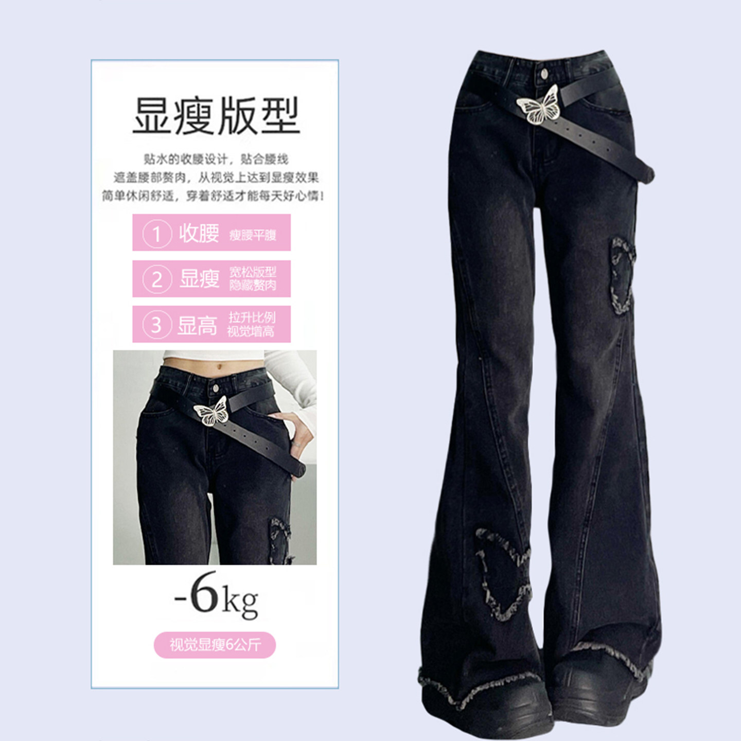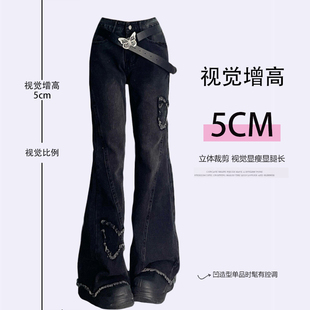 女装 裤 胖mm蝴蝶刺绣微喇叭牛仔裤 型超好看 子 女黑色高级感版 大码