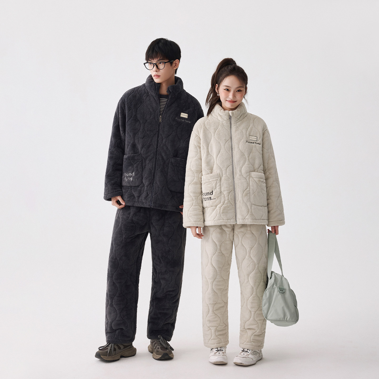 套装 慕斯绒家居服保暖情侣冬季 ubras贴贴系列 睡衣 刘雯同款