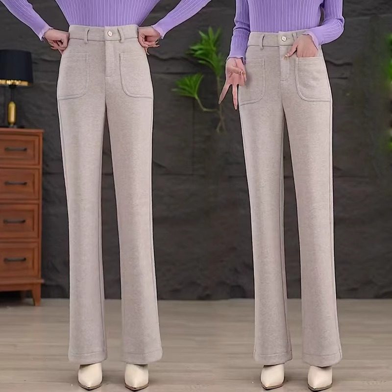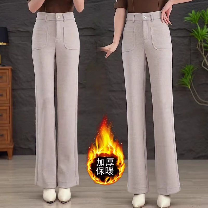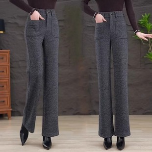 喇叭妈妈裤 女高腰显瘦加绒羊毛呢裤 休闲百搭 加厚微喇毛呢裤 秋冬季