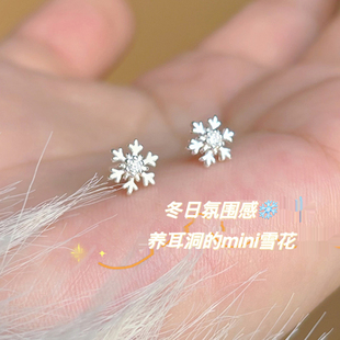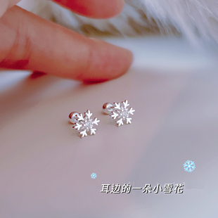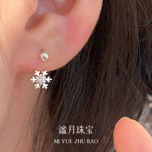 秋冬后挂式 闪锆雪花珍珠耳钉女高级感小众气质耳环独特圣诞节耳饰
