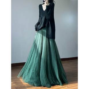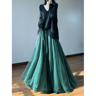 剪变超好看丝绒网纱冬裙不规则重工轻奢纱裙半身裙长款 齐地蓬蓬裙