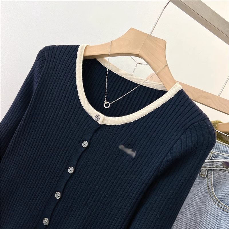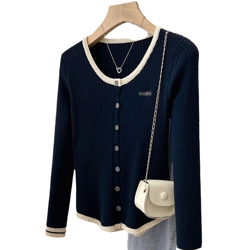 毛衣打底衫 拼色刺绣针织开衫 百搭坑条长袖 韩版 显瘦上衣 女2024秋季