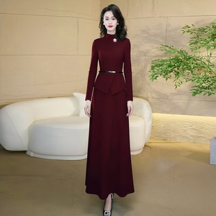 酒红色秋冬长裙女2025新款 气质长裙73 显瘦宴会连衣裙显瘦好看冬装