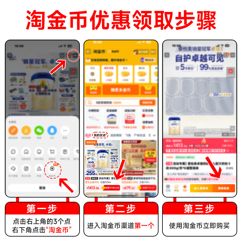1罐 36个月800g 淘金币更划算 爱他美顶配领熠3段幼儿配方奶粉12