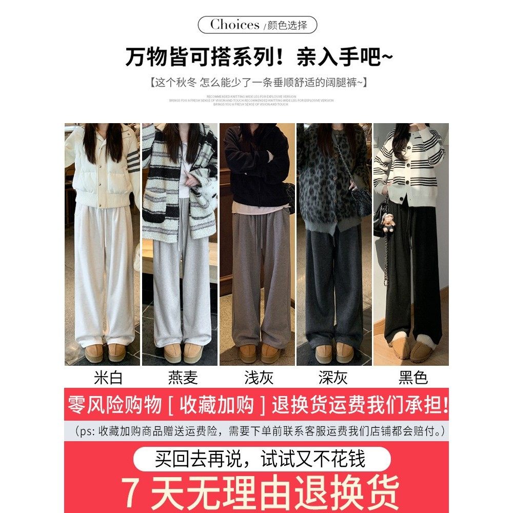 高腰直筒垂感小个子灰色阔腿裤 羊羔绒糯米裤 女秋冬加绒2025年新款